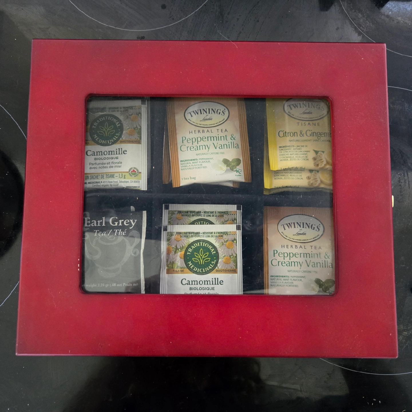I have a tea collection gift box available for sale! It's a beautiful way to store and display a variety of teas. Tea seen in photo is not included.
