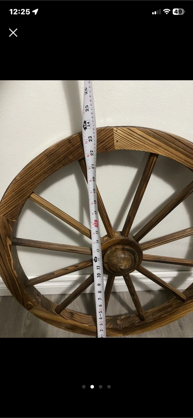 Selling a wooden wagon wheel in great condition! It measures approximately 26 inches in diameter, making it a nice statement piece for your home , this item is $35.00 it’s not free , not sure why it’s giving dates of a calendar to be sold by and then it goes to free, it’s not free , very good condition it was $85 .00 actual price NOW $35