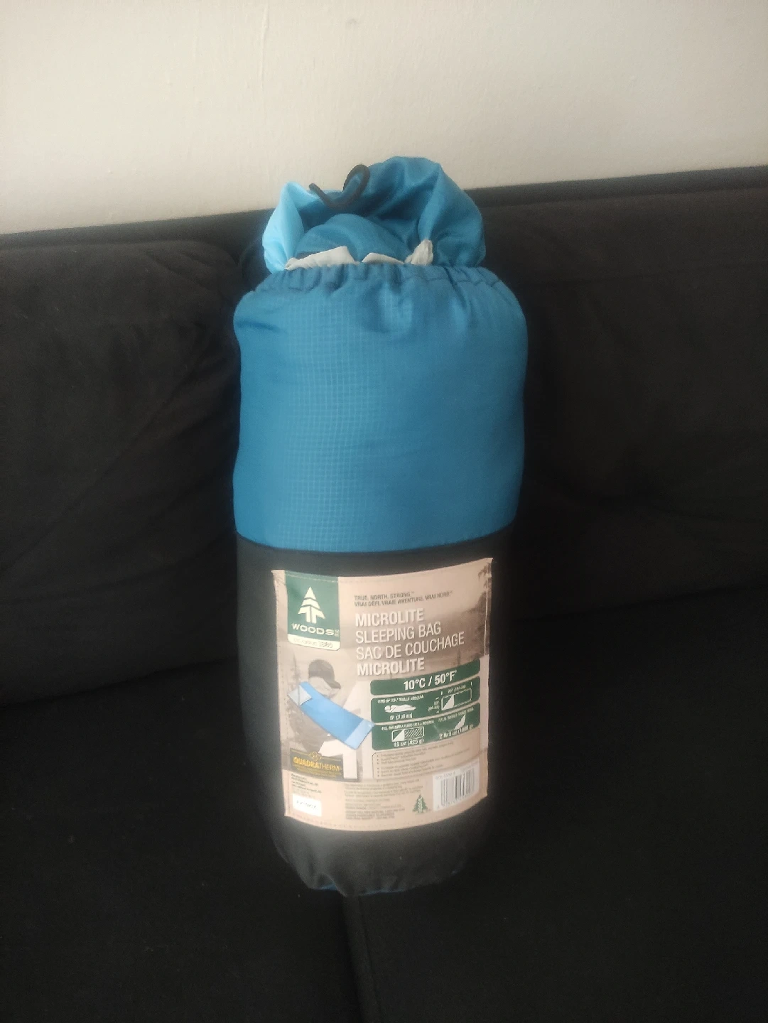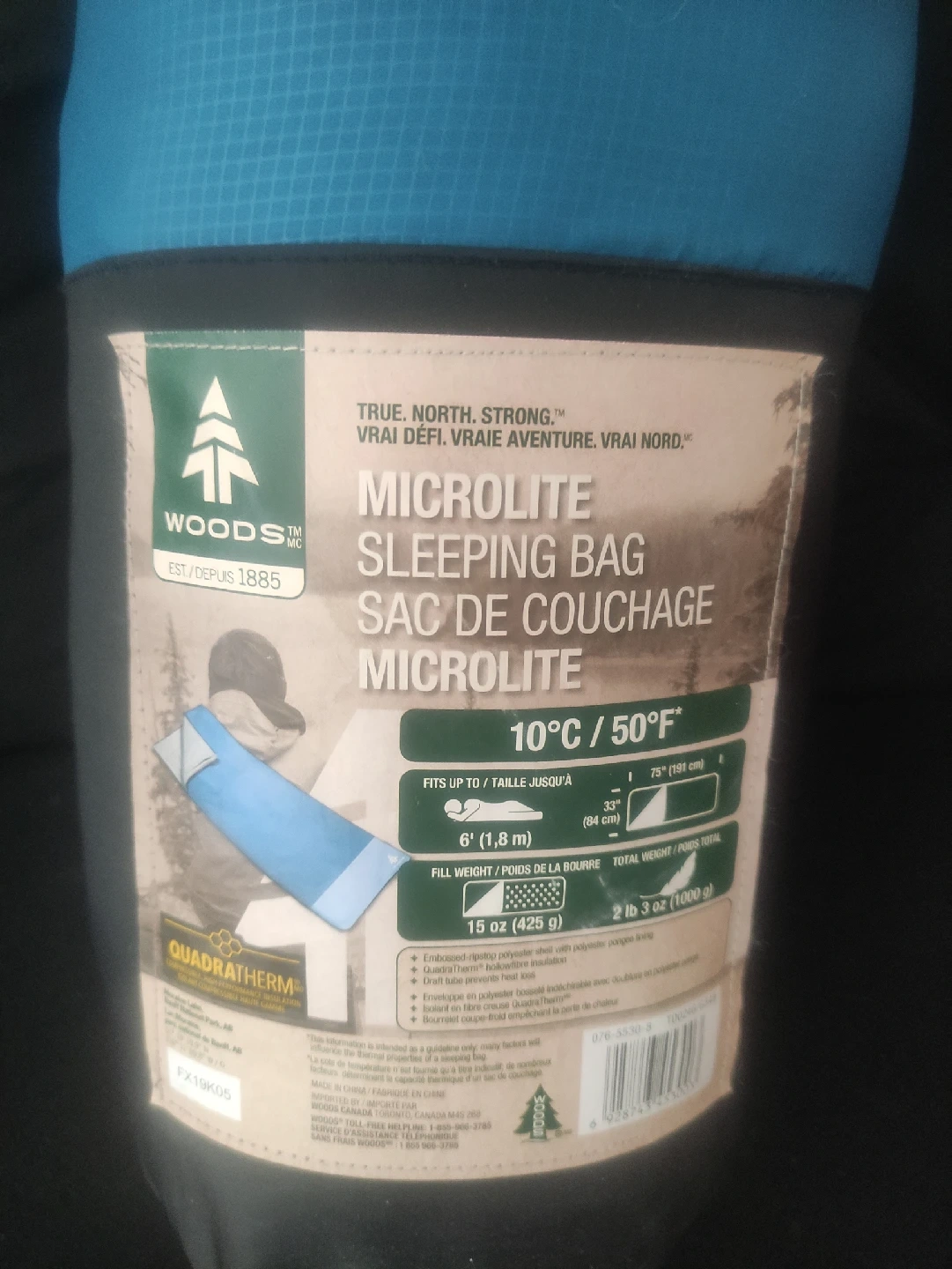 Selling a Woods Microlite sleeping bag in excellent condition! Key features: - Fits up to 6' (1.8m) - Temperature rating: 10°C / 50°F - Fill weight: 15 oz (425 g) - Total weight: 2 lb 3 oz (1000 g) It's lightweight and easy to carry, perfect for camping or backpacking