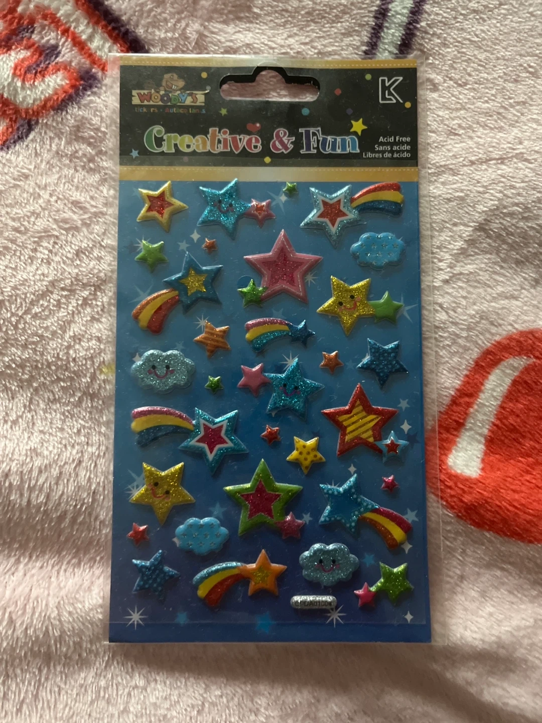 256Add some sparkle to your crafts with these Woody's Creative & Fun star stickers! They're acid-free, so they're safe for all your projects. Perfect for decorating cards, gift bags, invitations, and letters