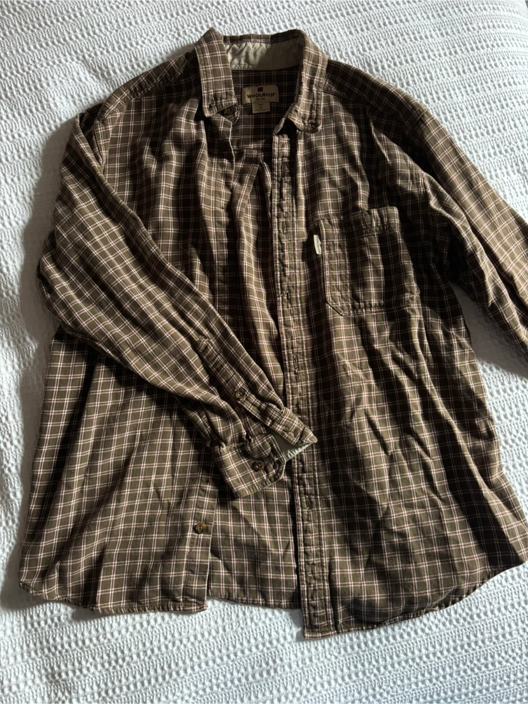 65Cozy Woolrich flannel shirt in a classic plaid pattern! It's a men's size medium and made from 100% cotton. Perfect for layering as an oversized flannel. Missing the buttons so it can only be worn open
