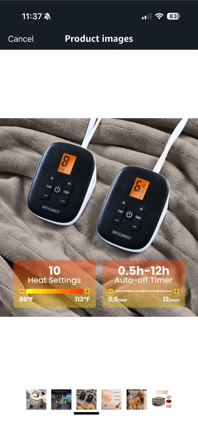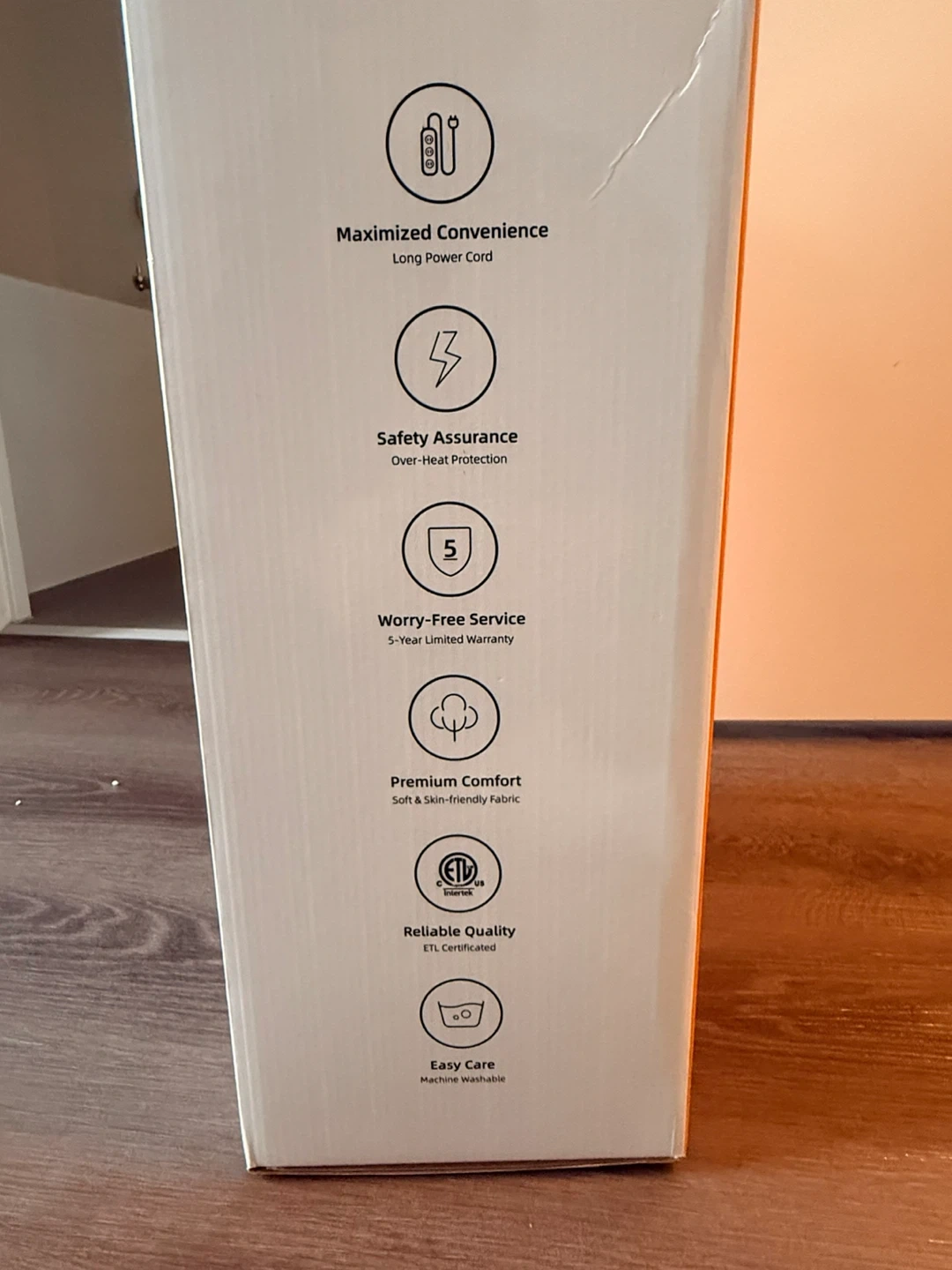 This WOOMER heated blanket features two temperature zones and comes equipped with two controllers! It's machine washable and hands free. The blanket is made with 200 GSM flannel and uniform heating wires. It has 10 heat settings and a 0.5h-12h auto-off timer Material Polyester Colour Beige Brand WOOMER Special feature Breathable, Durable, Skin Friendly Blanket Form Throw Blanket Age range (description) Adult Premium Bedding Fabrics: Our heated throw blanket is made of fluffy faux fur; Durable, resilient and anti-dropping; Skin-friendly and suitable for full-body use; Gently nurture your skin to provide exceeding coziness and warmth Dual Controllers for Easy Control: Each controller manages its corresponding zone, allowing you to switch between 10 heat levels (86℉ to 113℉). The 0.5h to 12h auto-off timer (0.5/1h increments) lets you customize heating time. 19-foot extra-long cord ensures flexibility in bedrooms, living rooms, dens, and more Superior Heating Technology: This 90"x100" king-size electric blanket features U-shaped heating wires for even heat distribution, guaranteeing comfort. Fast heating technology provides instant warmth, perfect for cold days, and is simple enough for the elderly and children to use Safety Protection: ETL certified, the Woomer heating blanket includes overheat protection to prevent accidents. The auto-off timer ensures you can sleep securely and No-worry during cold weather