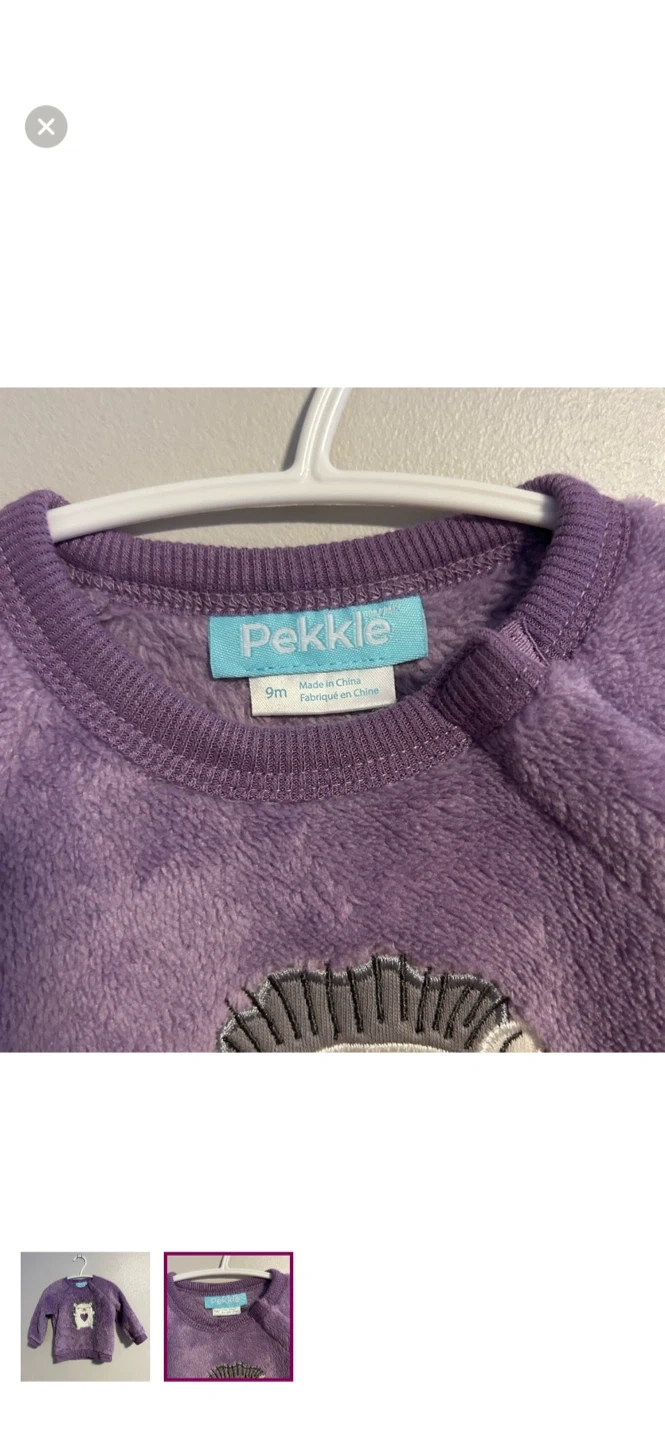 Pekkle brand. Pullover Sherpa sweater. Purple with embroidered hedgehog . Size 9m. Brand new condition