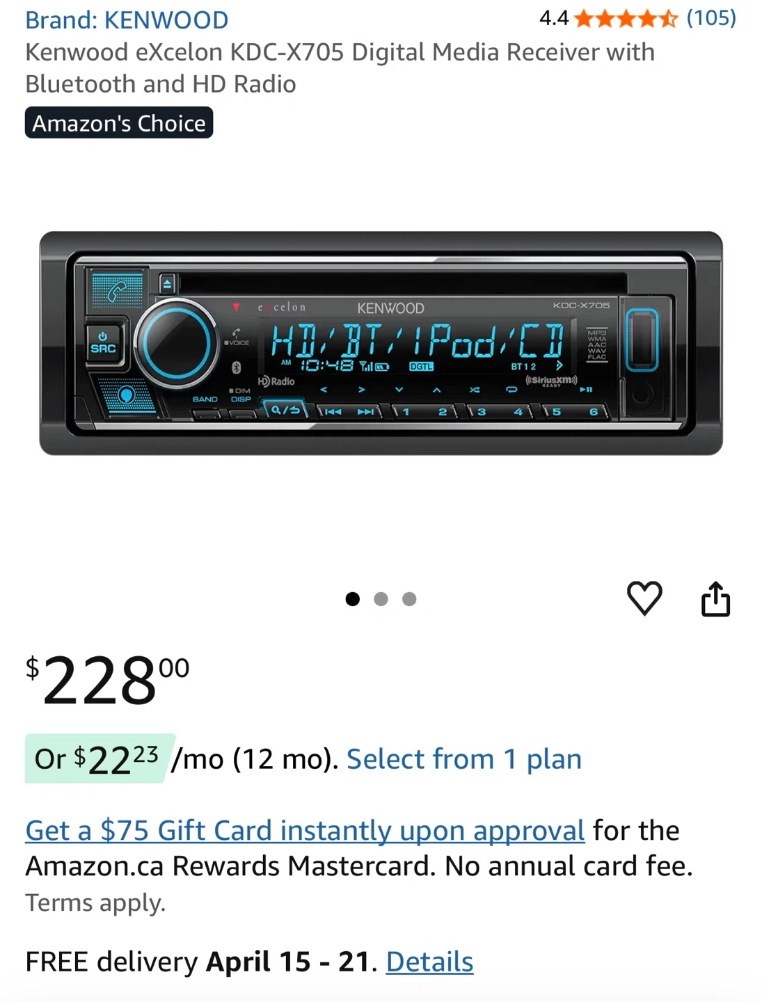 Kenwood Excelon KDC-X705 CD Receiver with Bluetooth & HD Radio