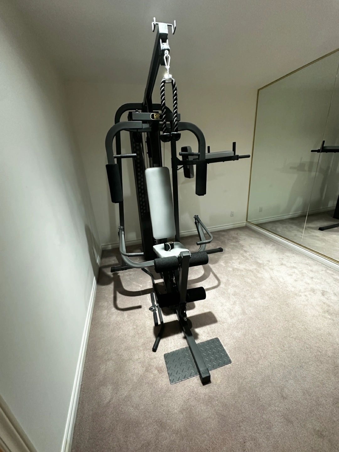 Must Go ! Moving Sales!Offering a collection of exercise equipment, ideal for your home gym needs. Includes a multi-station gym setup featuring various workout stations. Also, an exercise bike. I believe this bundle would bring a sense of peace during your daily workouts.