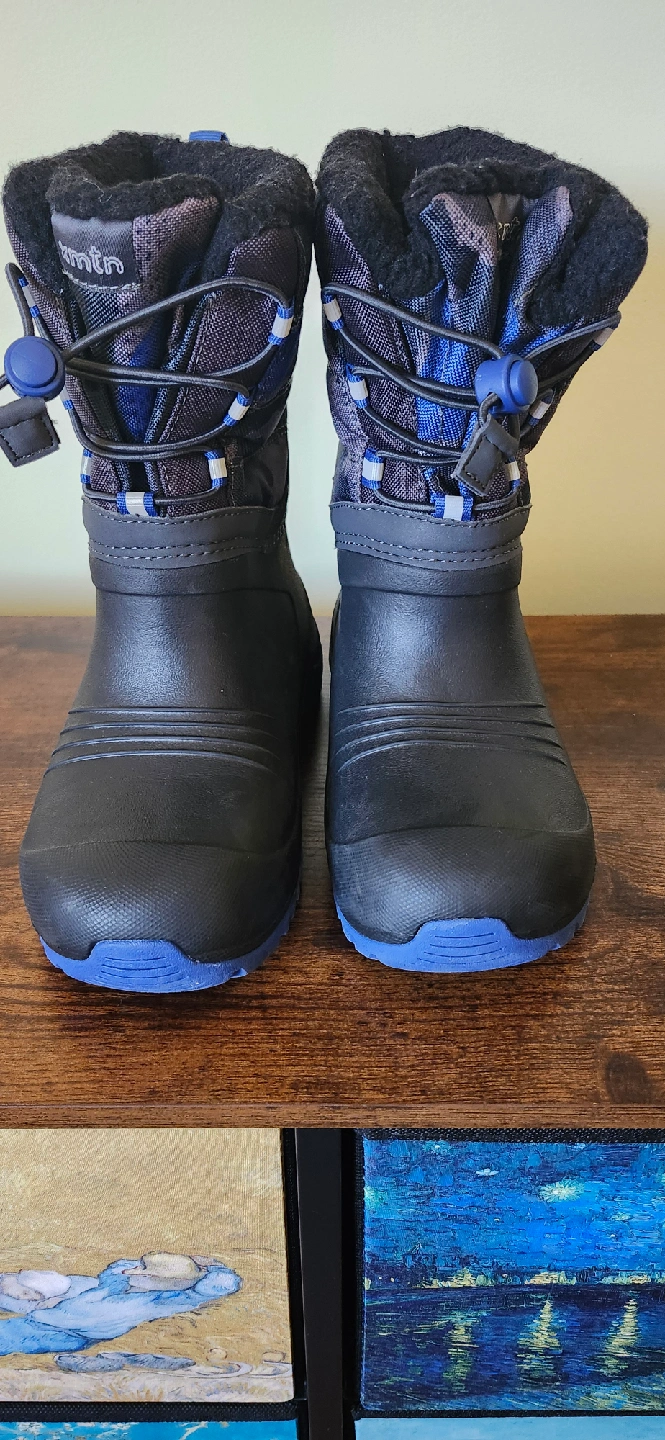 81Keep your little one's feet warm with these Kamik winter boots! They are black and blue and in great condition. Size 1.