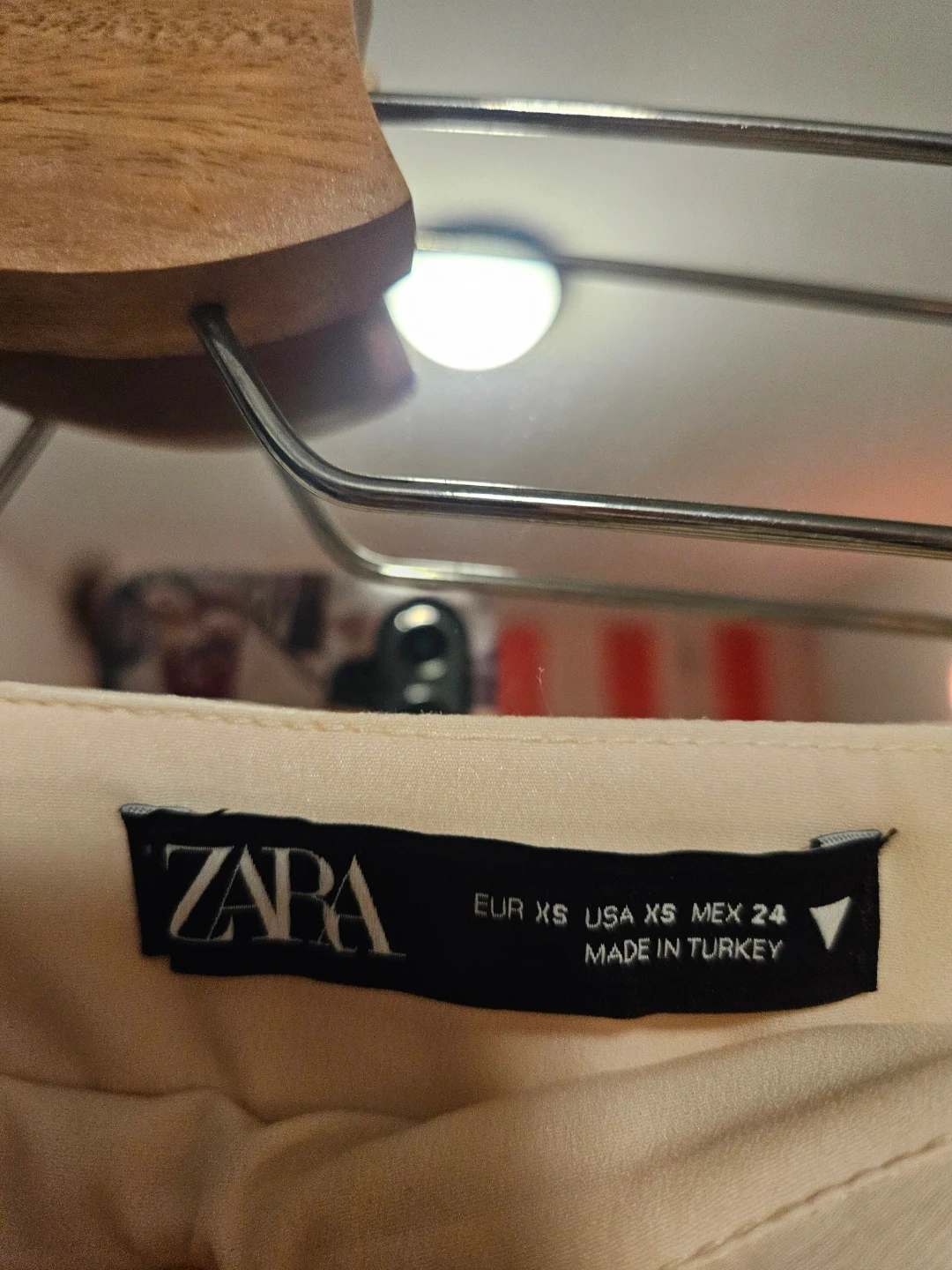 Selling a beautiful Zara pleated skirt in size XS! It's a lovely, flowy skirt that's perfect for any occasion. The color is a soft, neutral shade that goes with everything. It's in great condition and ready for a new home!