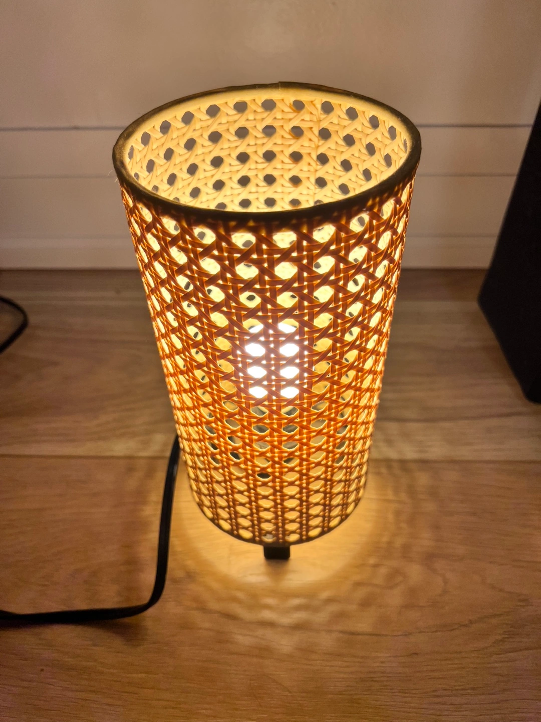 36Table lamp made from woven cane. Includes a lightbulb and cord with switch. Cord length: 2.2 m (7 ' 3 ") Diameter: 13 cm (5 ") Height: 26 cm (10 ") Max.: 8.6 W (9 W)