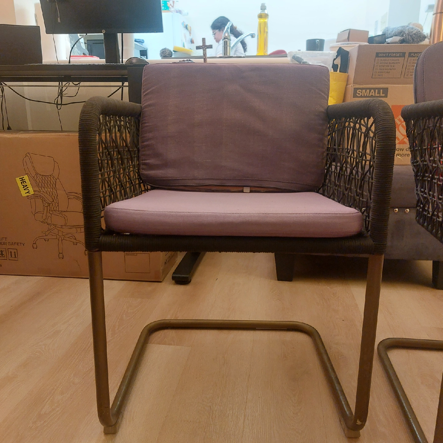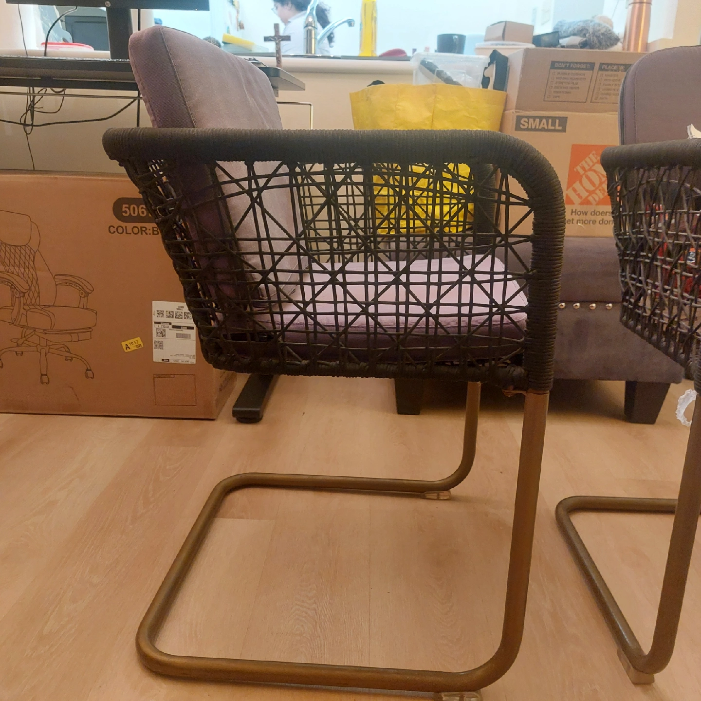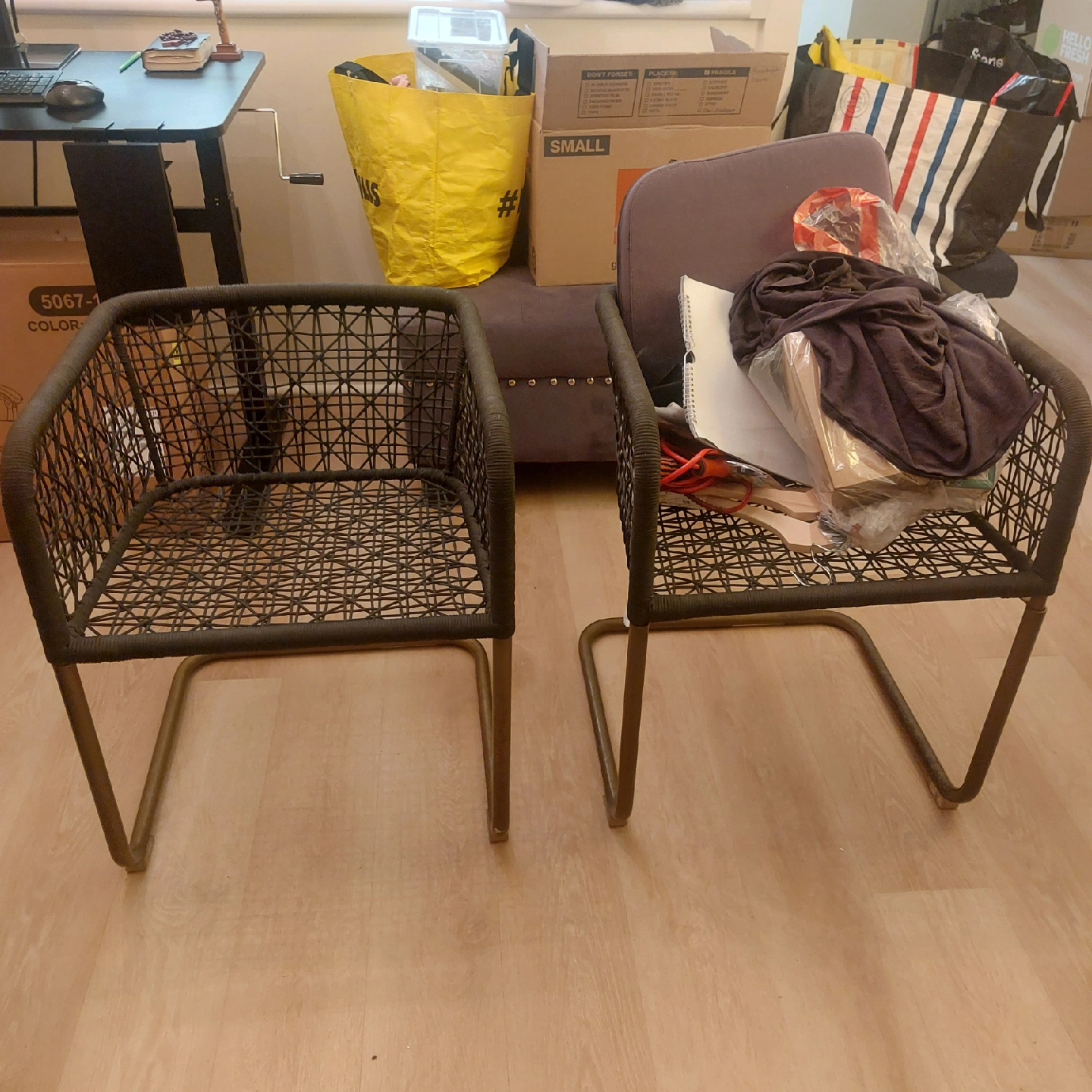 31Selling a set of two woven accent chairs. The chairs feature a unique woven design, metal frame, and a comfortable seat cushion. 1 year old, in great condition, minimally used. Selling as I'm shifting. Need it gone ASAP. Pickup only. Price is negotiable. If the ad is up, the product is available.
