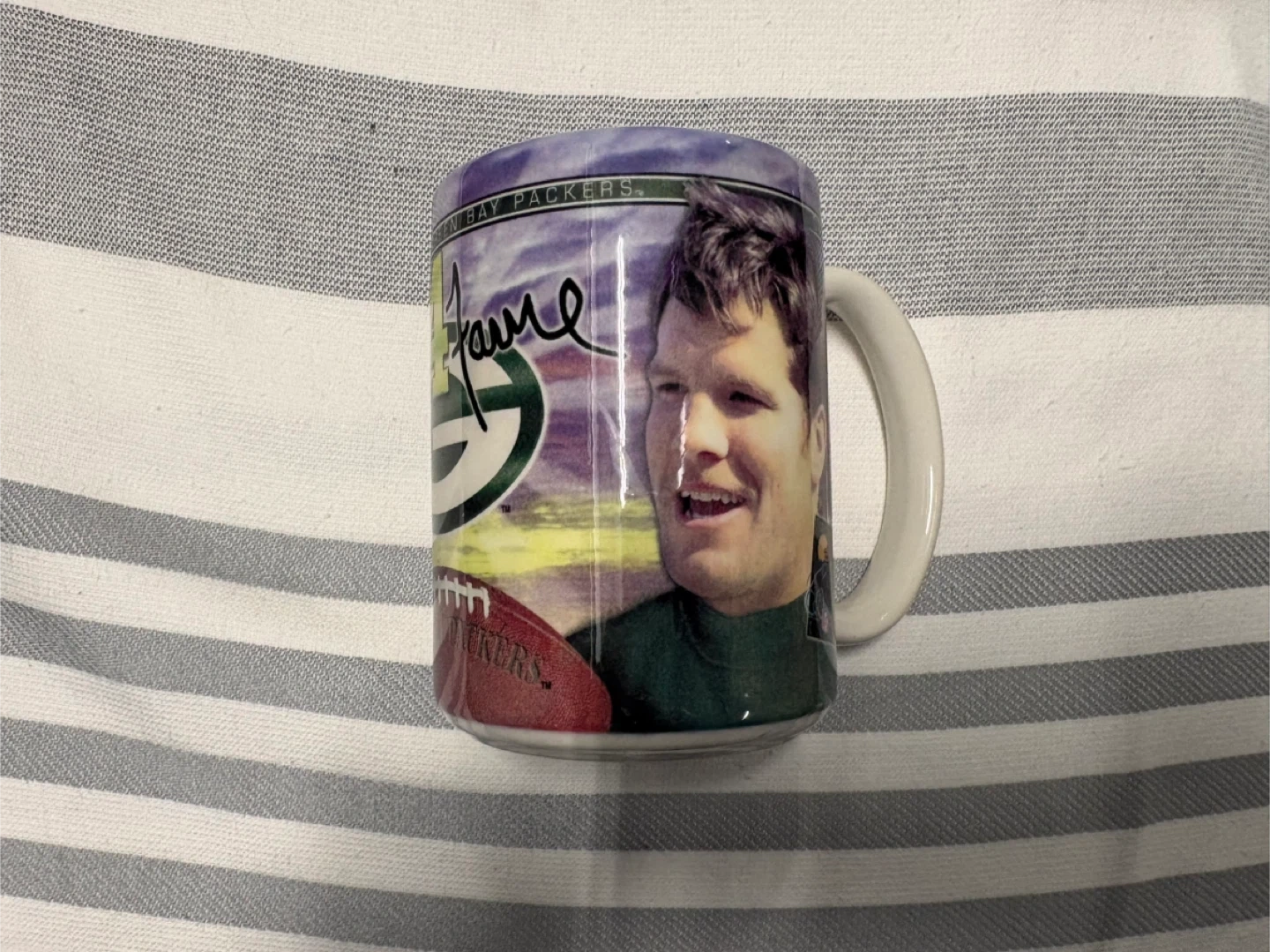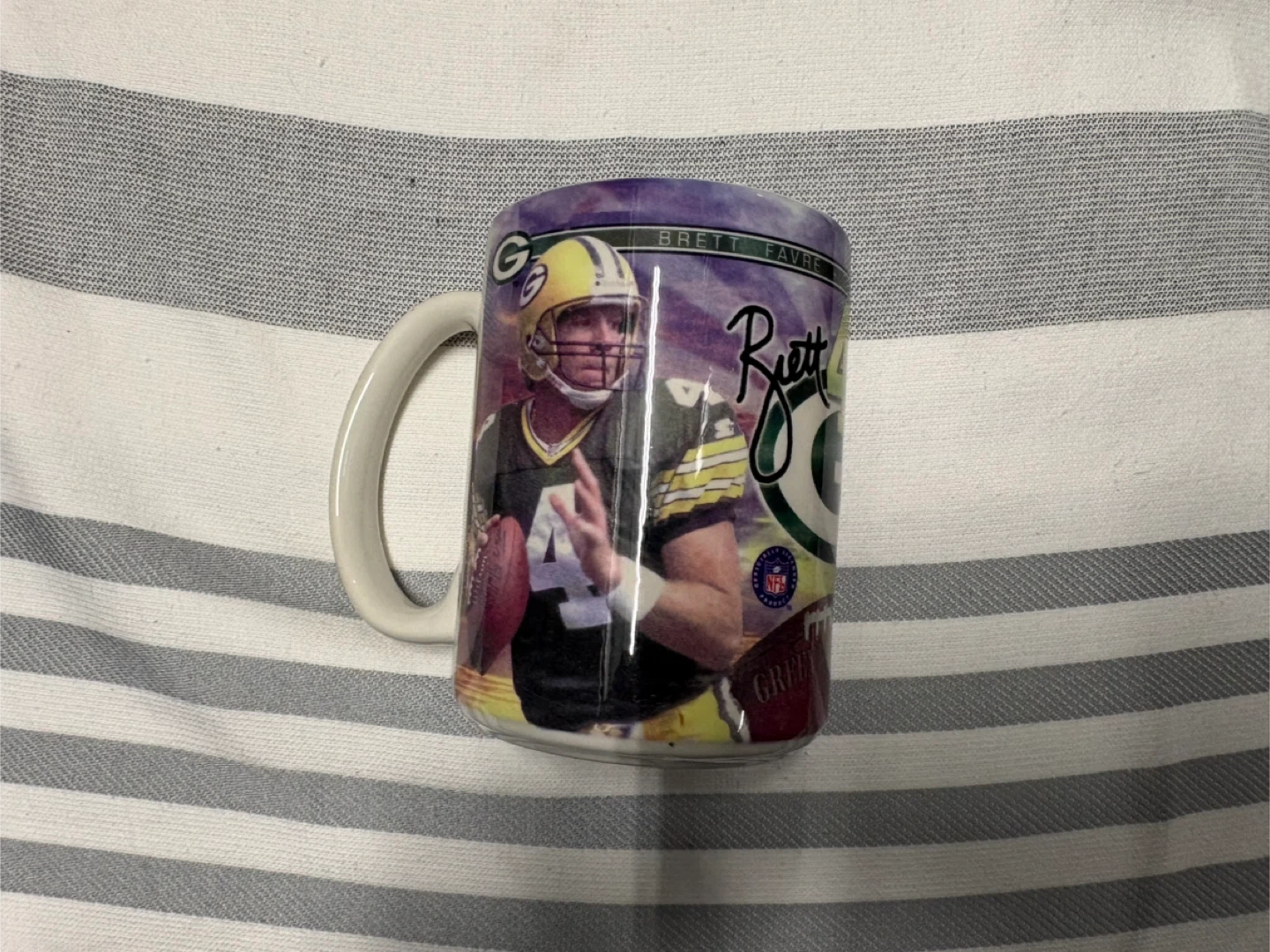Keywords football mug, sports mug, green bay fan, brett favre, nfl mug, collectible mug, sports memorabilia