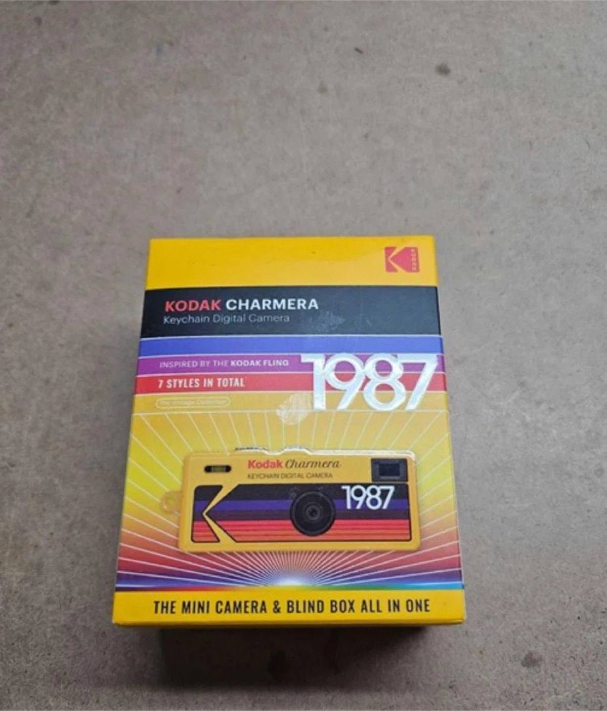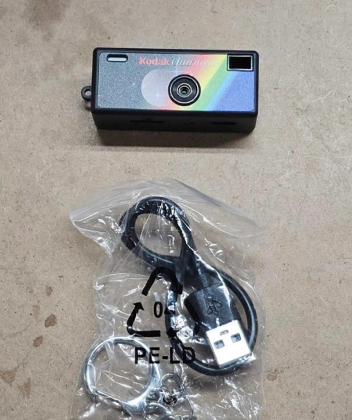 Kodak Charmera keychain digital camera in great condition. This tiny retro-style camera works both as a keychain accessory and a mini digital camera, perfect for capturing quick photos and videos on the go. It features a fun nostalgic design inspired by classic Kodak cameras and includes built-in filters and frames for vintage-style pictures.