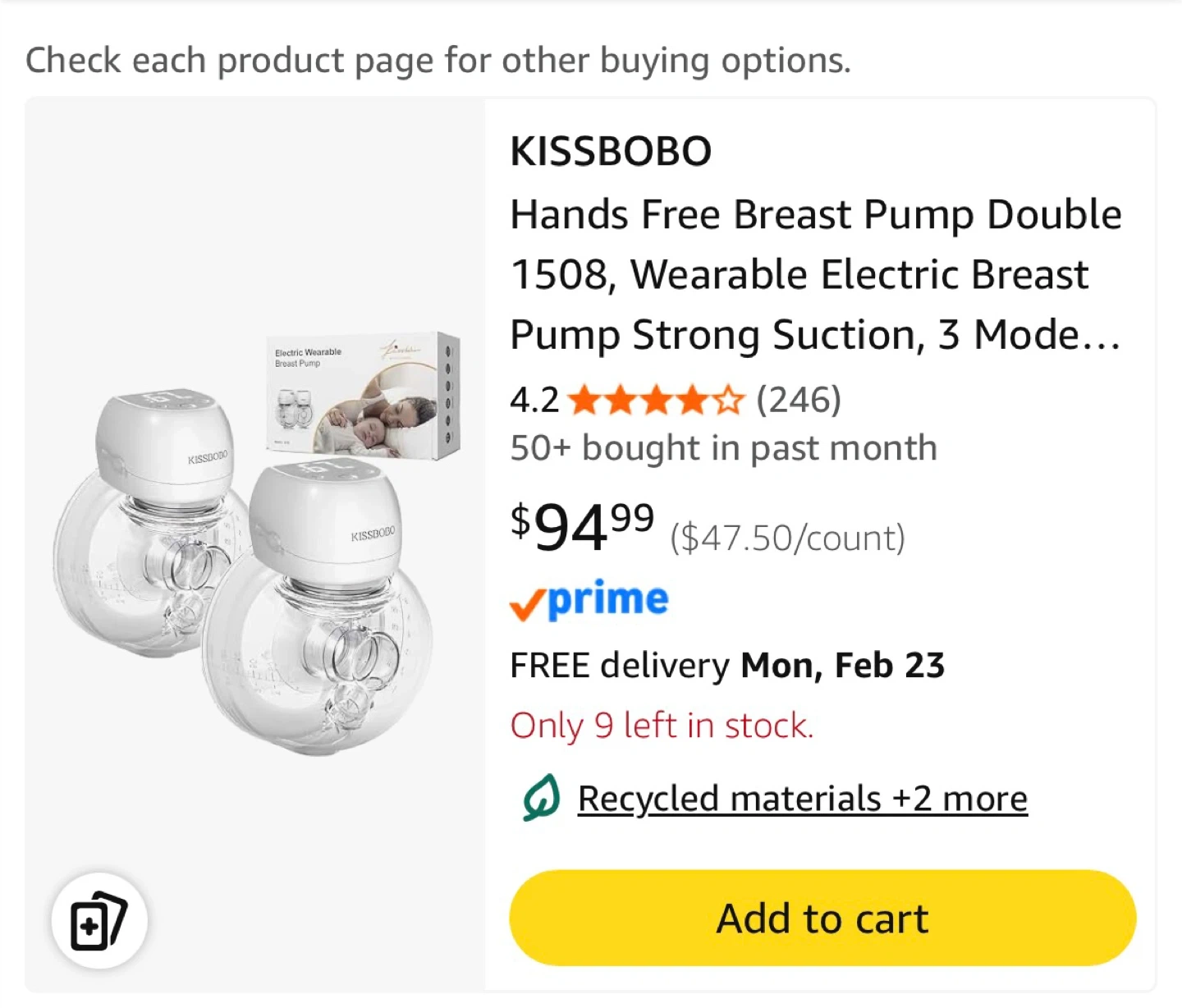 KISSBOBO Electric Wearable Breast Pump Double 1508