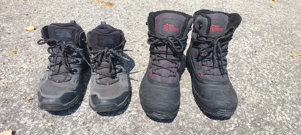 Selling two pairs of mens boots! One pair is The North Face, and the other is Ice Fields. Both are in very good condition and ready for winter adventures. See 2nd photo for outersole/lugs condition.