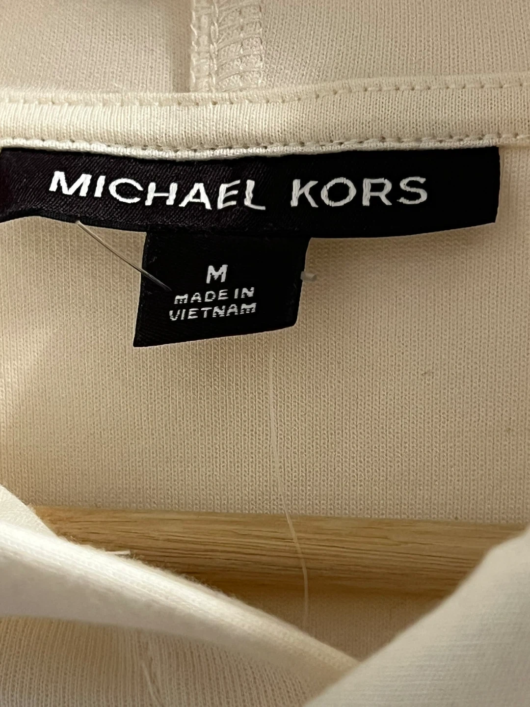 It's a brand new Michael Kors cream-coloured hoodie. Its unisex. Medium for men or Large for women. Retail price is $175, shown on the tag. Selling it for $100.