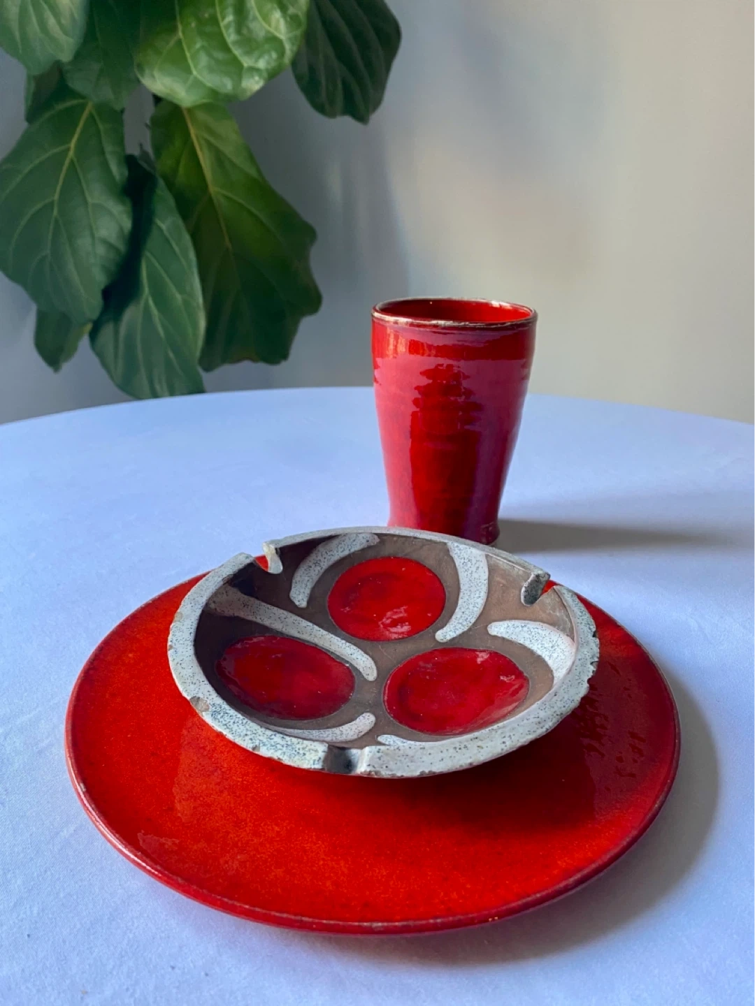 -Abstract Low Bowl/Ashtray: A unique modernist piece showcasing geometric circular motifs.