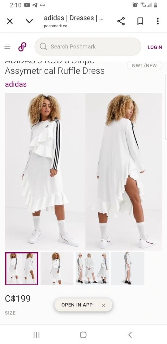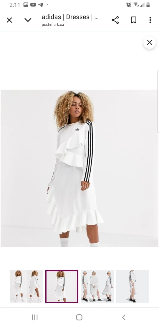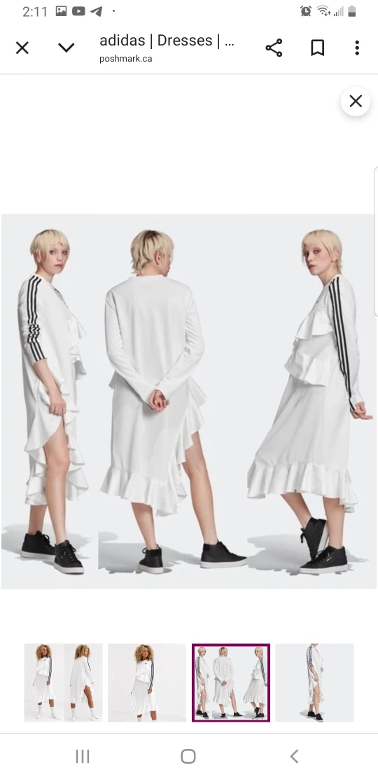 This is a stylish Adidas 3-Stripe Asymmetrical Ruffle Dress. It features the classic Adidas 3-stripe design and an asymmetrical ruffle detail. Originally bought for $199.