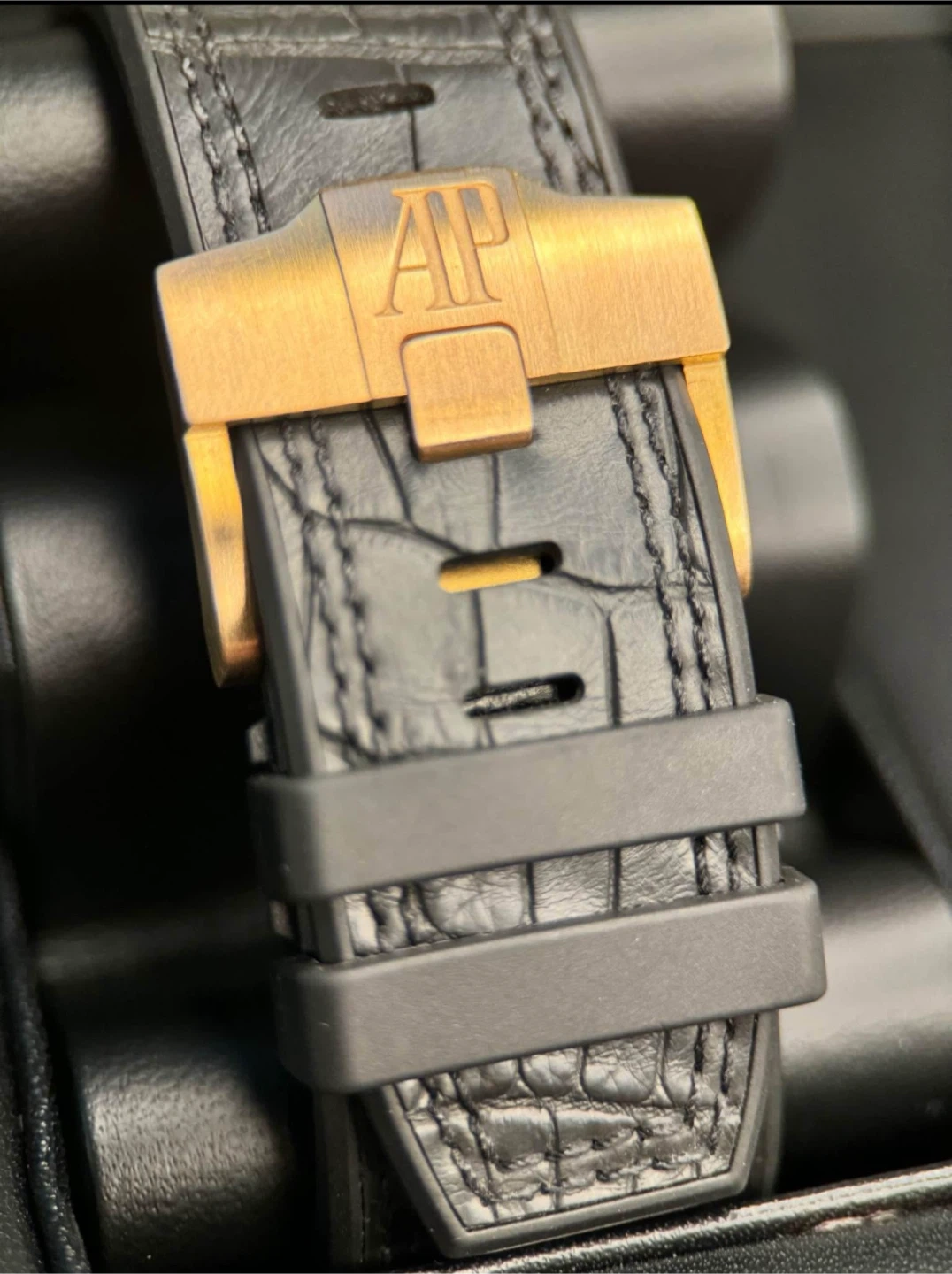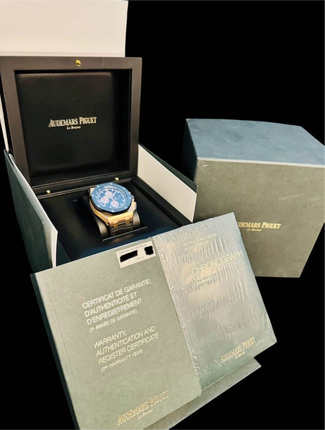 Contents: Complete set, watch, inner AP box, outer AP box, Chronograph book & papers dated 2014. It’s currently fitted with a black AP rubber strap that is in excellent condition and compliments this amazing dial!