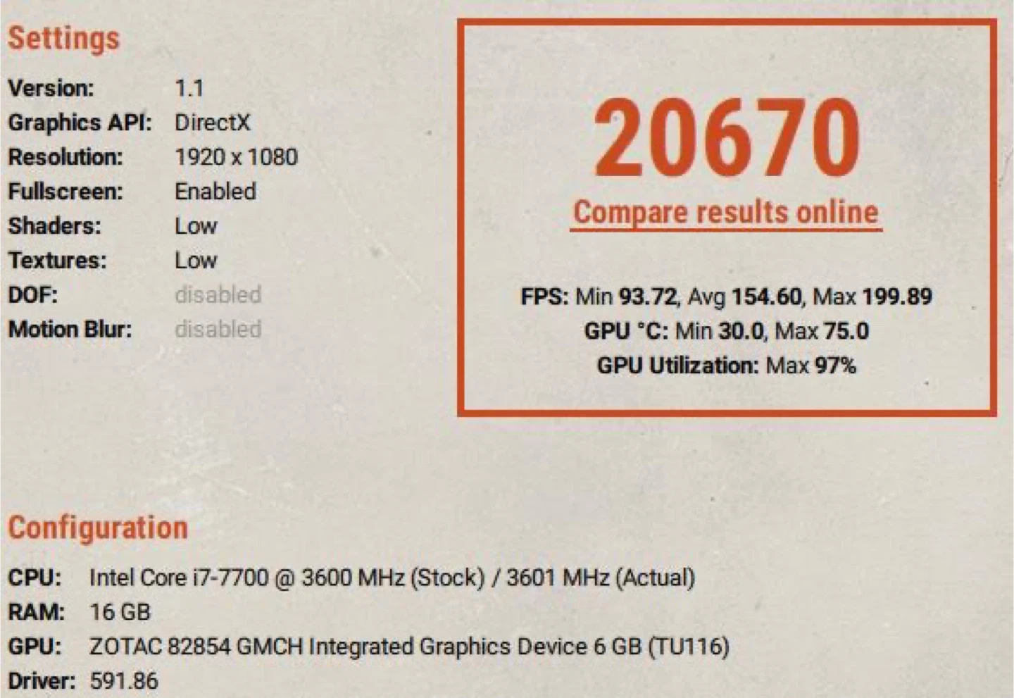 1080p Avg 154.6 FPS / Max 199.89 FPS