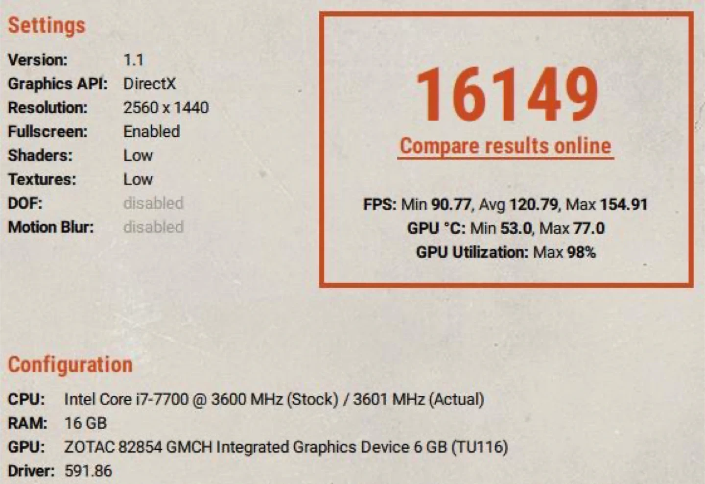 1440p Avg 120.79 FPS / Max 154.19 FPS
