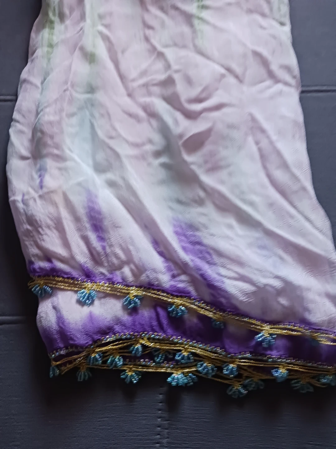 Lightweight Tie-Dye Scarf with Beaded Trim