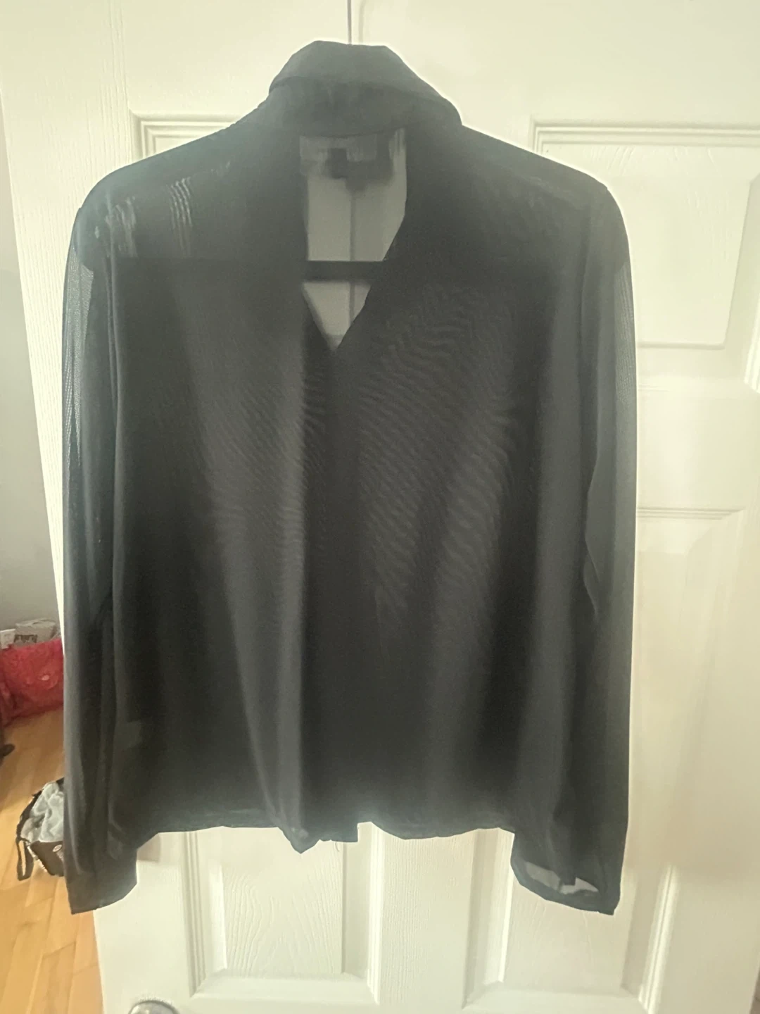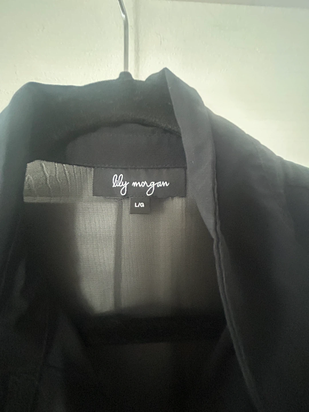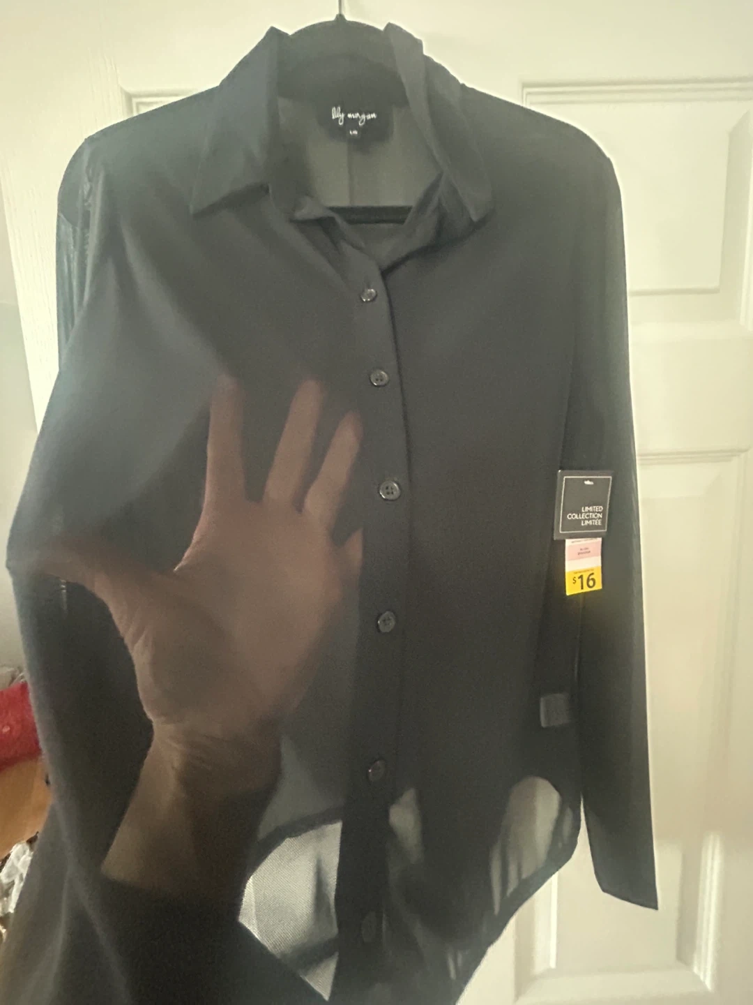 New Lily Morgan sheer black button-up shirt. Size is large. This shirt is made of a mesh material. Tags still on