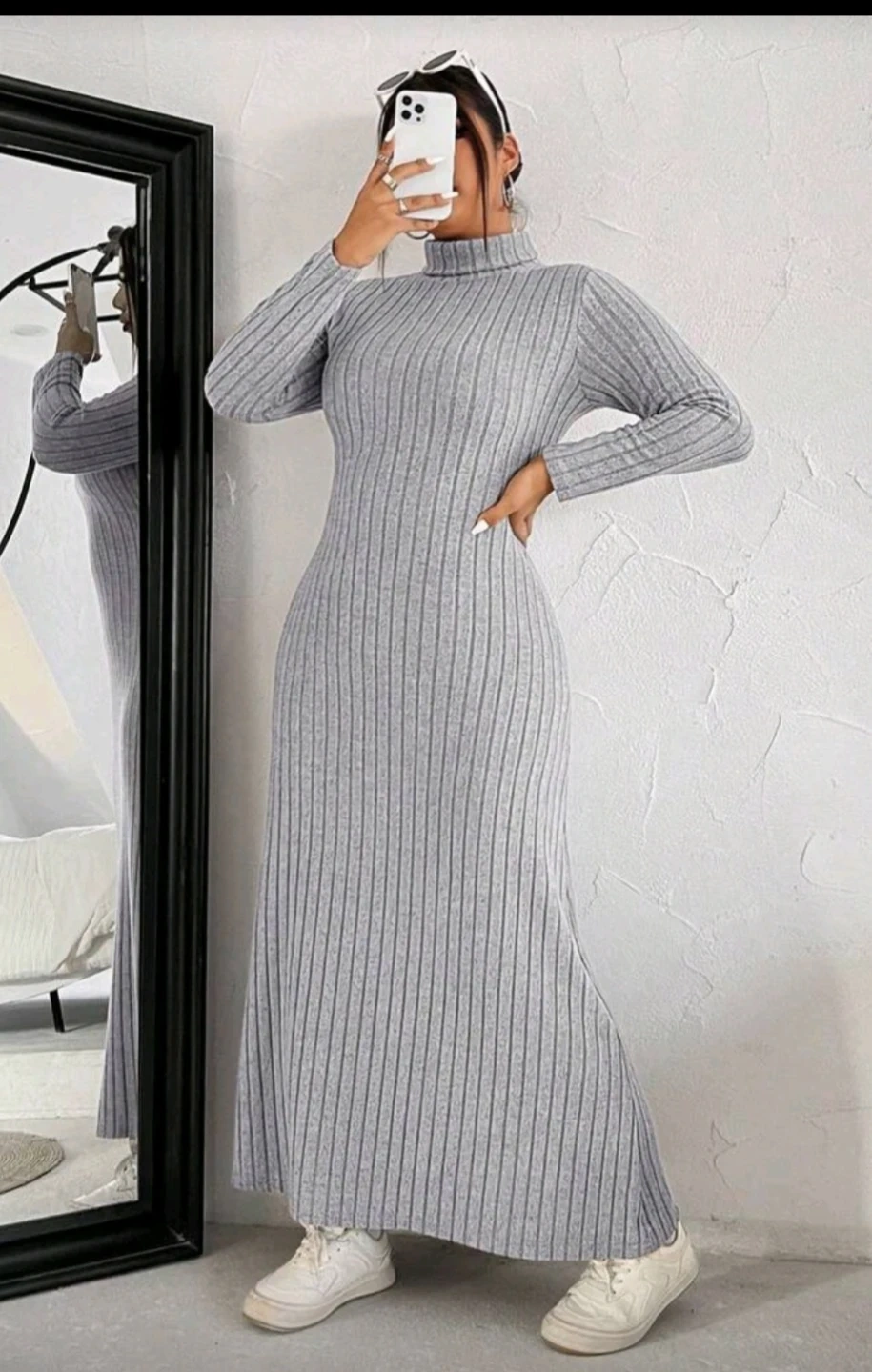 NEW Shein Grey Ribbed Turtleneck Maxi Dress - Size L