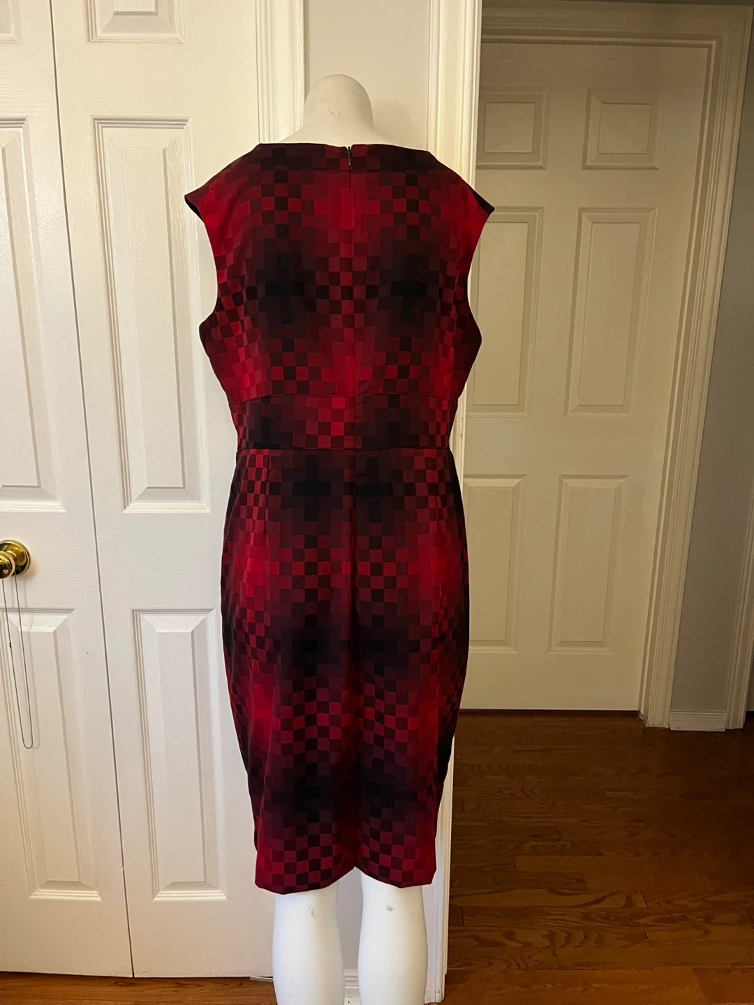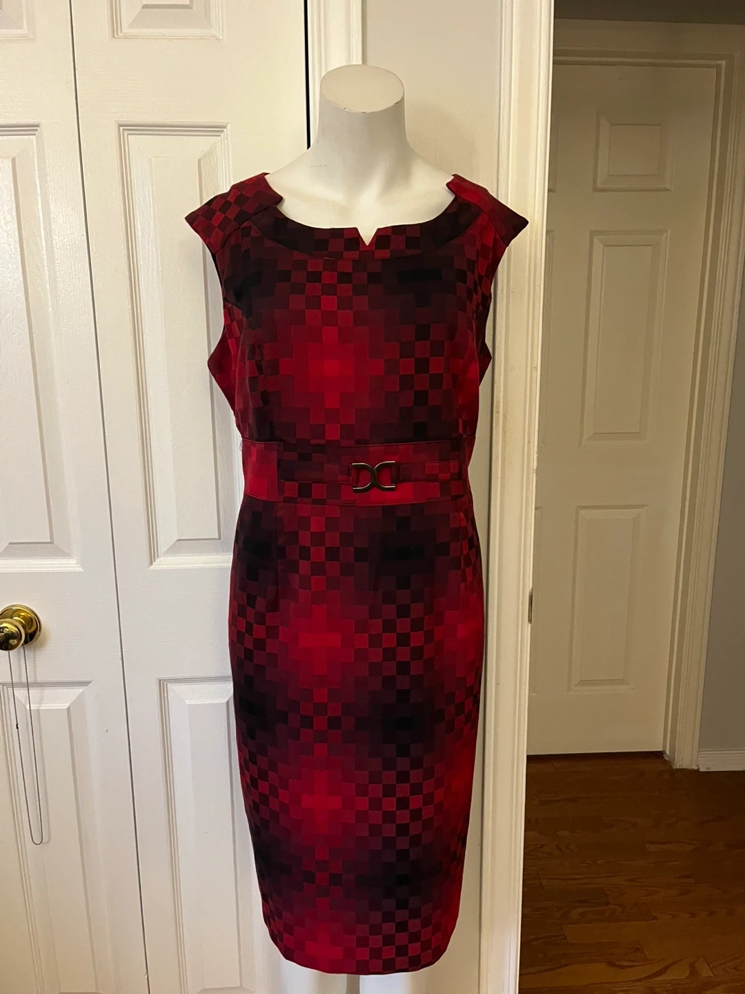 Cleo Red and Black Checkered Sheath Dress Size 14