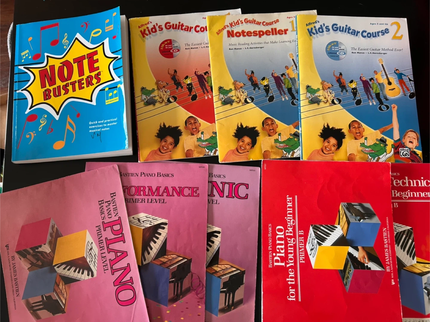 $5 for everything Piano (Bastien Piano Basics) • Piano Primer Level (The main lesson book) • Performance Primer Level (Solo pieces) • Technic Primer Level (Exercises) • Piano for the Young Beginner - Primer B (For ages 5-7) Guitar (Alfred's Kid's Guitar Course) • Kid's Guitar Course 1 • Kid's Guitar Course 2 • Notespeller 1 & 2 (Music reading activities) General Theory • NoteBusters: A thick workbook with 240 exercises to master sight-reading and music notes. - CASH ONLY - Smoke free home - Pet friendly home 📍Pickup in Downtown Calgary area First come, first served