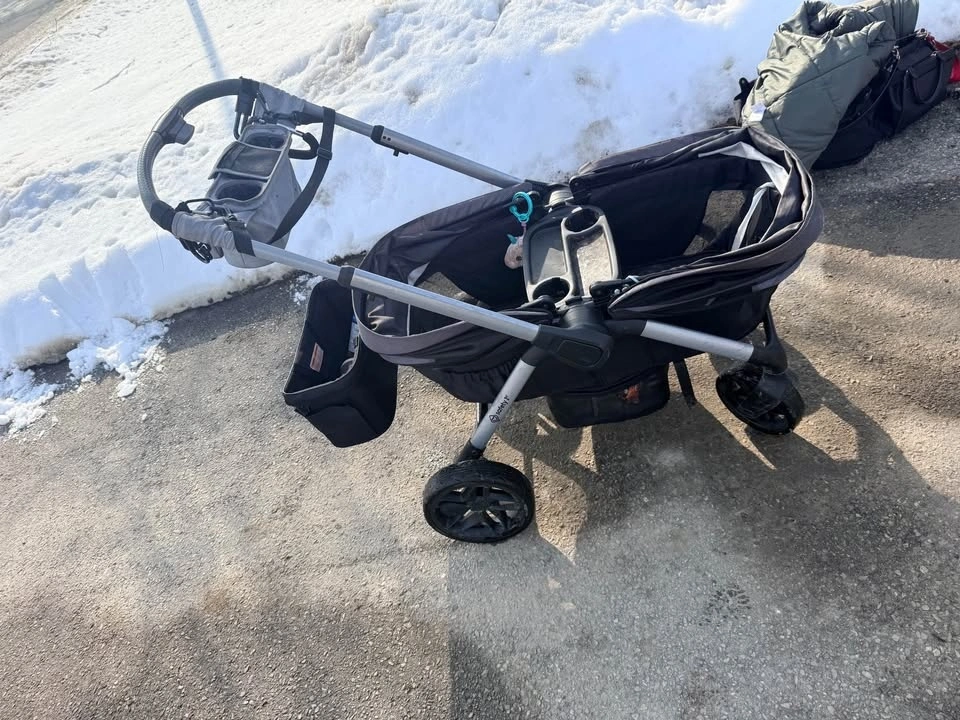 Comes with an extra front wheel and a weather shield. It can be pushed or pulled. Everything on it comes off except the basket. It will get a deep clean before pickup.