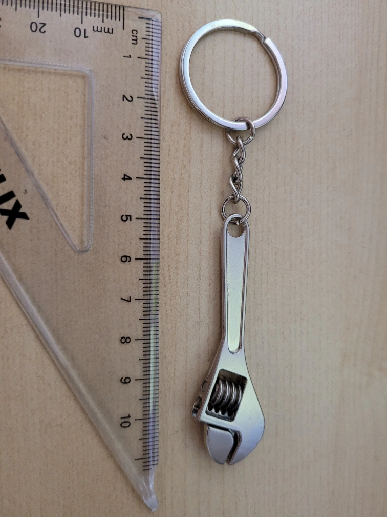 Selling a cute little wrench keychain! It's in great shape and ready to be attached to your keys or backpack. It's made of metal and measures about 8 cm in length.