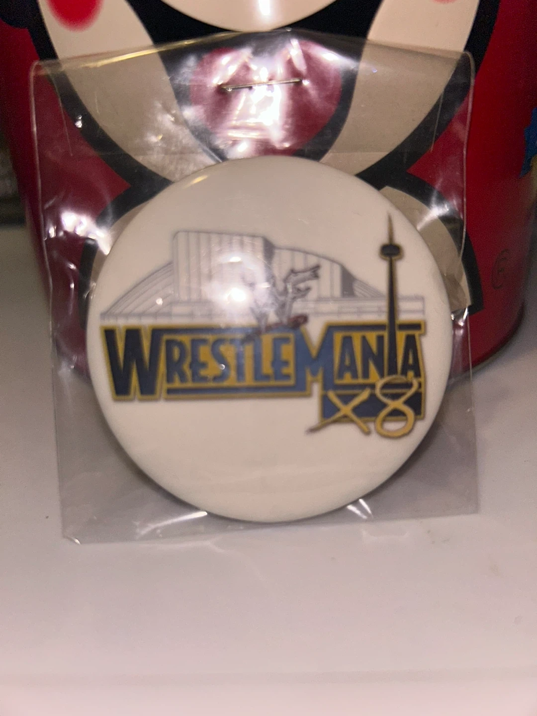30Selling a WrestleMania XX8 button pin. It's in great condition and still in its original packaging. A cool collectible for any wrestling fan