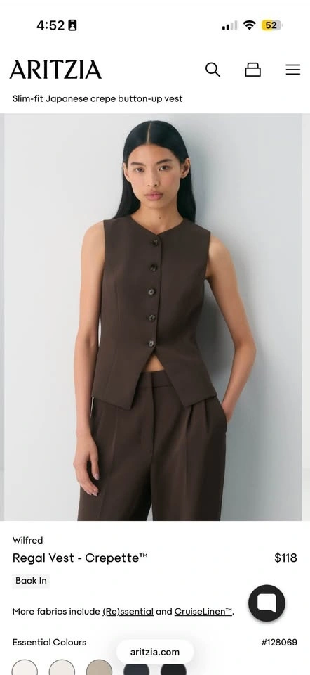 Brand new with tags. Colour: Rich Mocha Brown. Size: 10. Fabric: Crepette. Pick up 130 King St W or Bronte & Dundas, Oakville. Can also meet in Mississauga only on my schedule. Check out my listings for other Aritzia items.