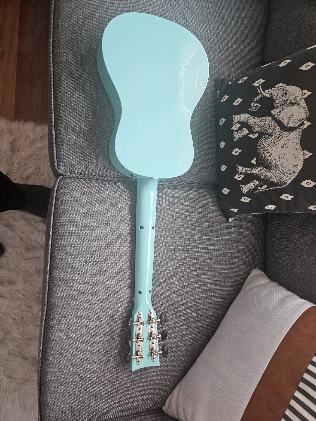 This is a kid's acoustic guitar featuring characters from Disney's Frozen. It has a fun, colourful design with Anna and Elsa. It's great for young aspiring musicians to start learning on!
