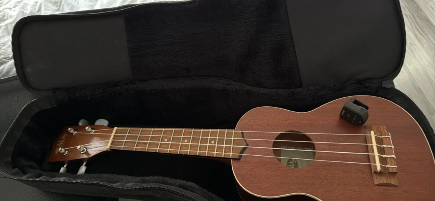 This is a Kala KA-S soprano ukulele. It's made of mahogany and comes with a tuner and a padded case. This ukulele is a great starter instrument!