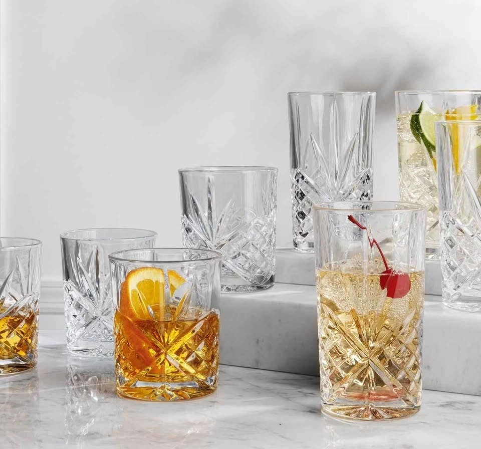 Brand new Dublin Collection crystal glass set. Never used, still in original box with protective packaging. Includes: 6 Double Old Fashioned glasses (11oz), 6 Highball glasses (12oz). Perfect for whiskey, cocktails, juice, or gifts. Elegant crystal design. Pretty heavy with a solid build. All perfect. Still in original packaging. Great as a gift for housewarming, wedding, or holidays. Price is firm.