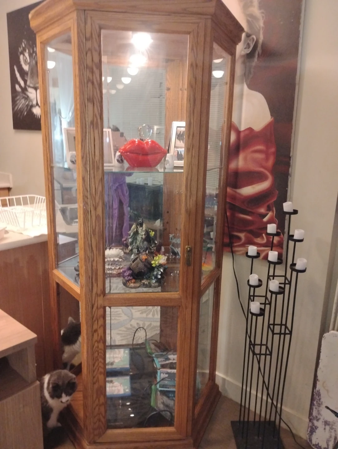 Selling a wooden display cabinet. It's in good condition and ready to showcase your favourite items! Perfect for collectibles or decorative pieces