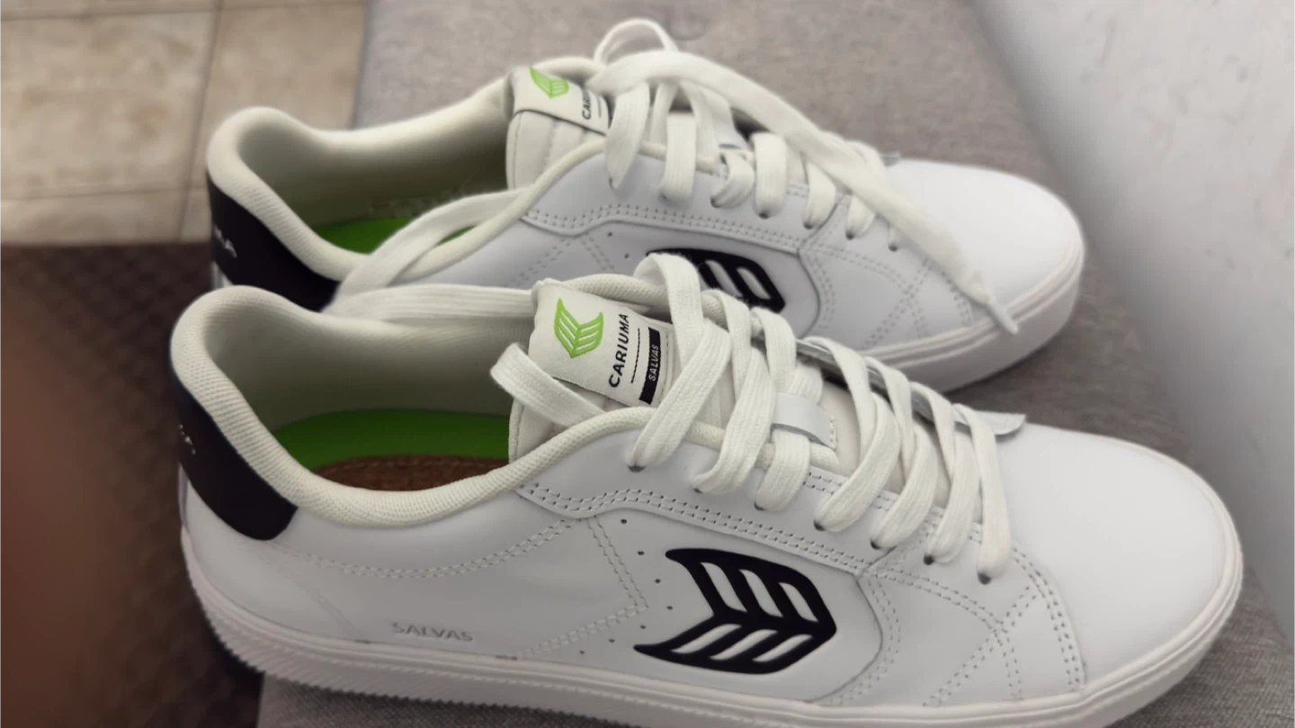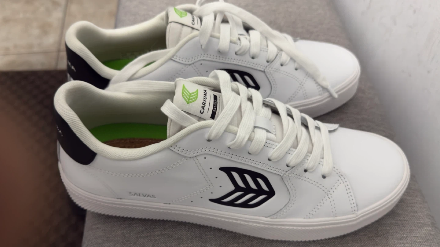 Cariuma Salvas White Leather Black Logo Sneakers