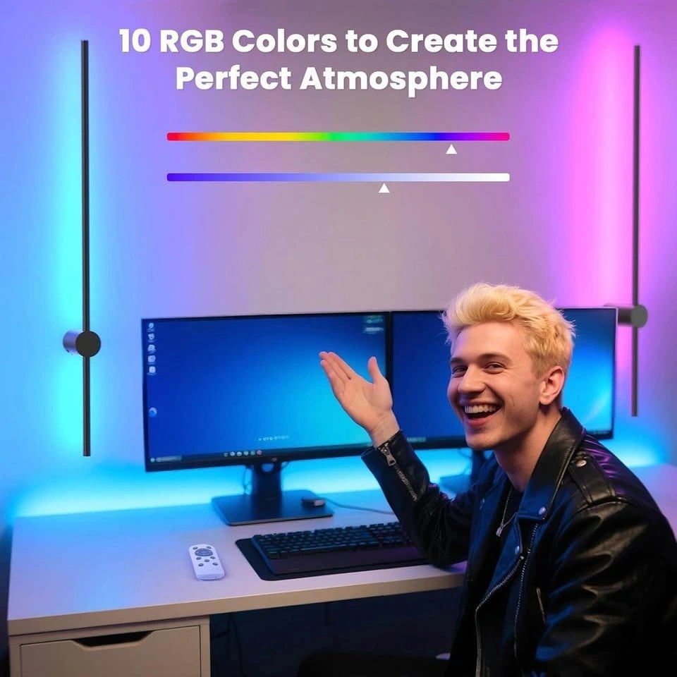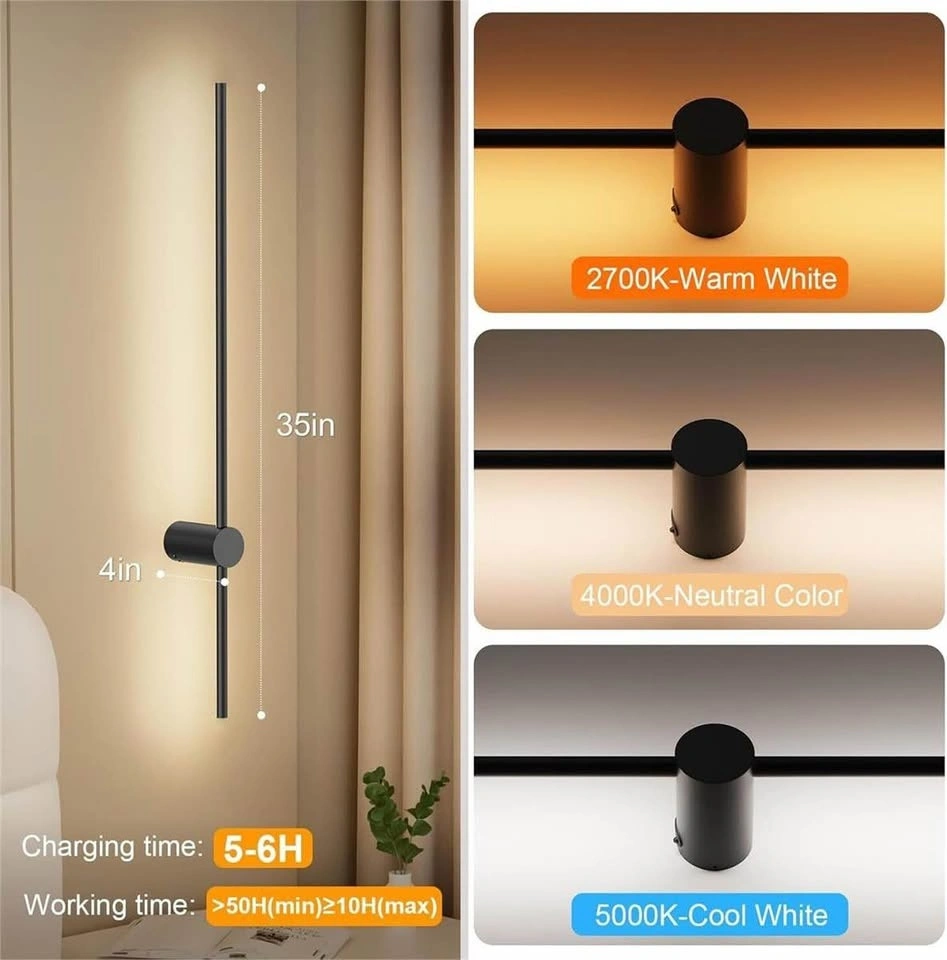 Sleek, modern design, these wall sconces set of two battery operated are perfect for renters or anyone avoiding wiring. Install them in minutes anywhere you need light bedside, hallways, or reading corners and enjoy their effortless style that fits any decor. This sconces wall decor set of 2 features a built-in 10,000mAh rechargeable battery, providing 10 to 50 hours of runtime on a single charge. It offers 7 vibrant colors and 3 adjustable color temperatures (2700K, 4000K, 5000K) to suit any setting. Additionally, the 5-level dimming function lets you easily adjust the brightness to create the perfect ambiance. This rechargeable wall sconce comes with a remote for easy control of on/off, brightness, and color temperature. Its memory function retains your last color and brightness settings. It also features 1H and 8H timer options for added convenience. Made from high-quality aluminum with a sleek matte black finish, ensuring durability. Its modern design complements various interior styles and is perfect for living rooms, bedrooms, corridors, and more, adding both functionality and elegance to any space.
