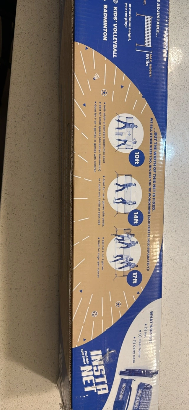 Get ready for some backyard fun with this Boulder badminton net, perfect for badminton, tennis, pickleball, and kids' volleyball! This portable net is super easy to set up and take down, making it ideal for spontaneous games anytime, anywhere. It's in excellent condition and ready for a new home. Adjustable height for different sports. Includes a carry bag for easy transport and storage. Priced at $60. If the ad is still up, it's still available!