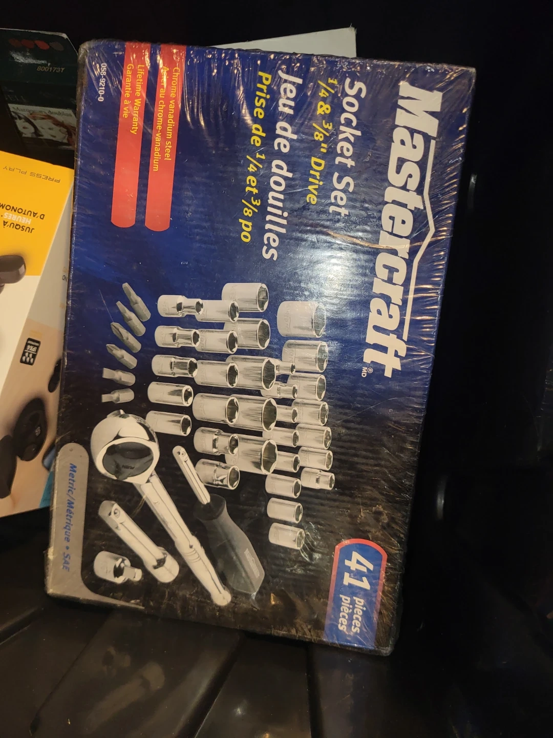 This Mastercraft socket set includes 41 pieces with 1/4" & 3/8" drive. It's made from chrome vanadium steel. This set is useful for various mechanical tasks.
