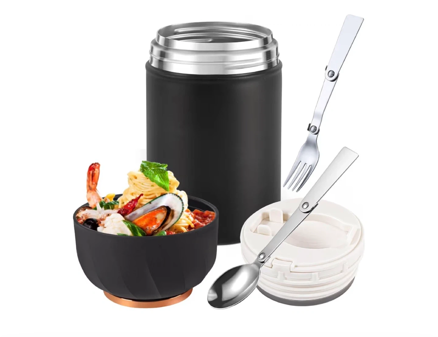 • Included: Each flask comes with its own foldable spoon and fork stored in the lid.