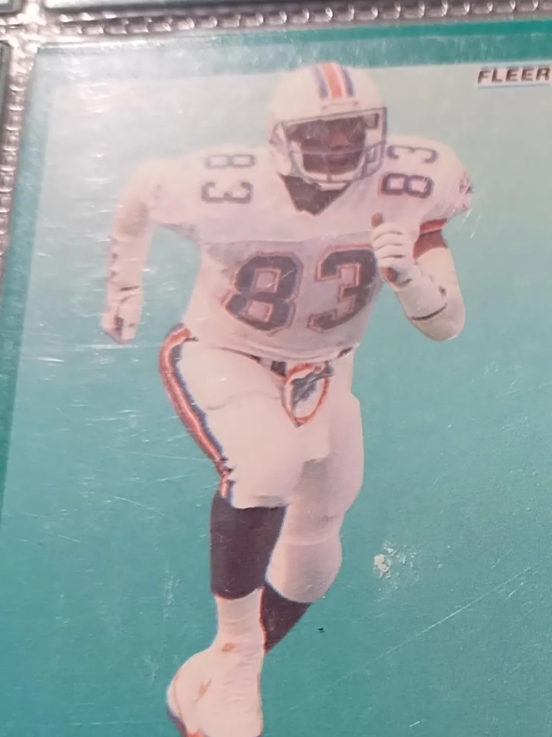 This is a Fleer NFL trading card featuring a Miami Dolphins player wearing number 83. It's a collectible item for football fans.