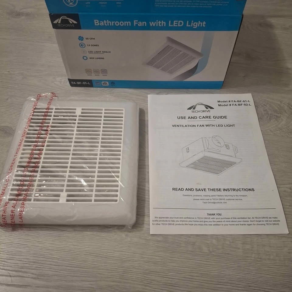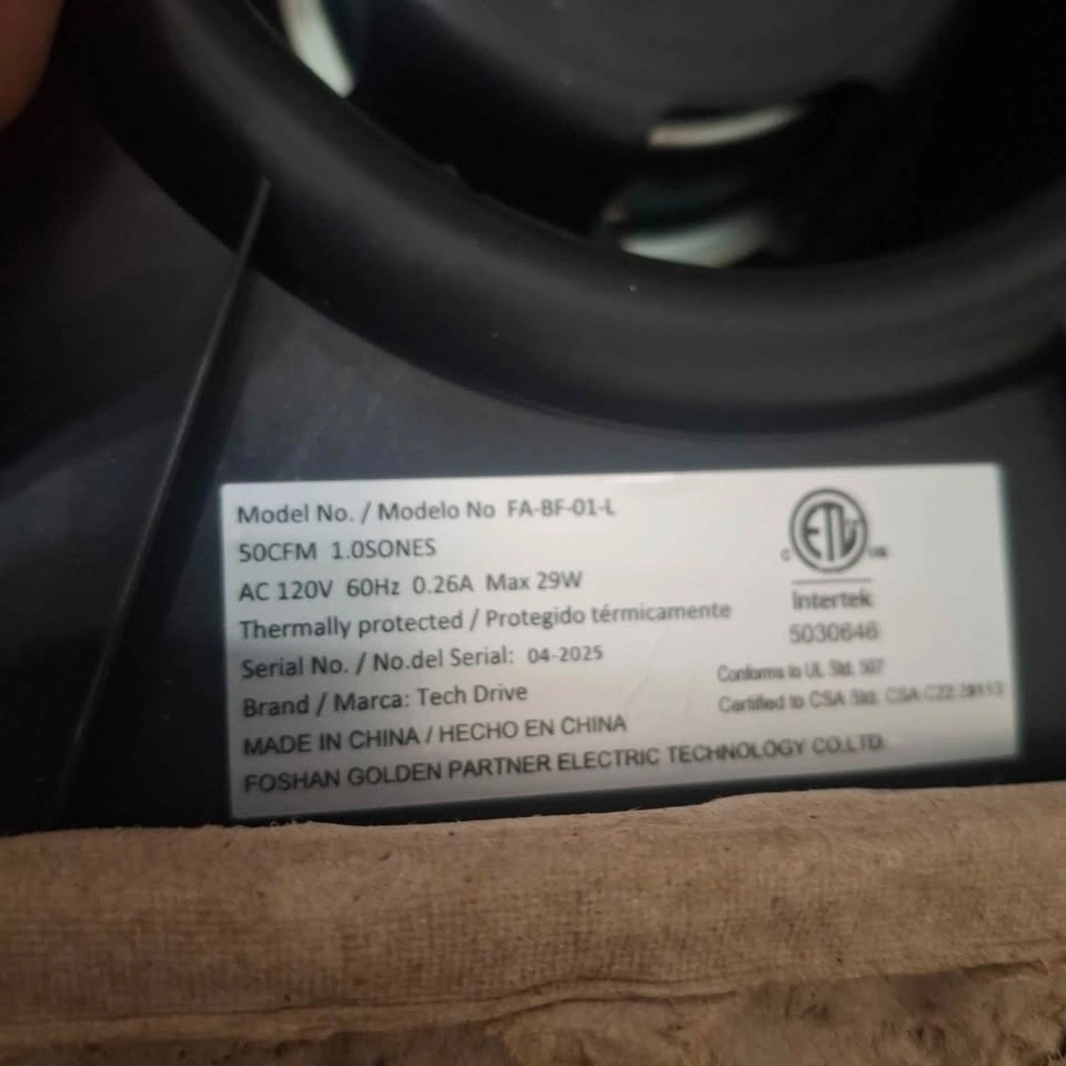 Tech Drive Bathroom fan 50 CFM, 1.0Sone DC Motor, Very Quiet
