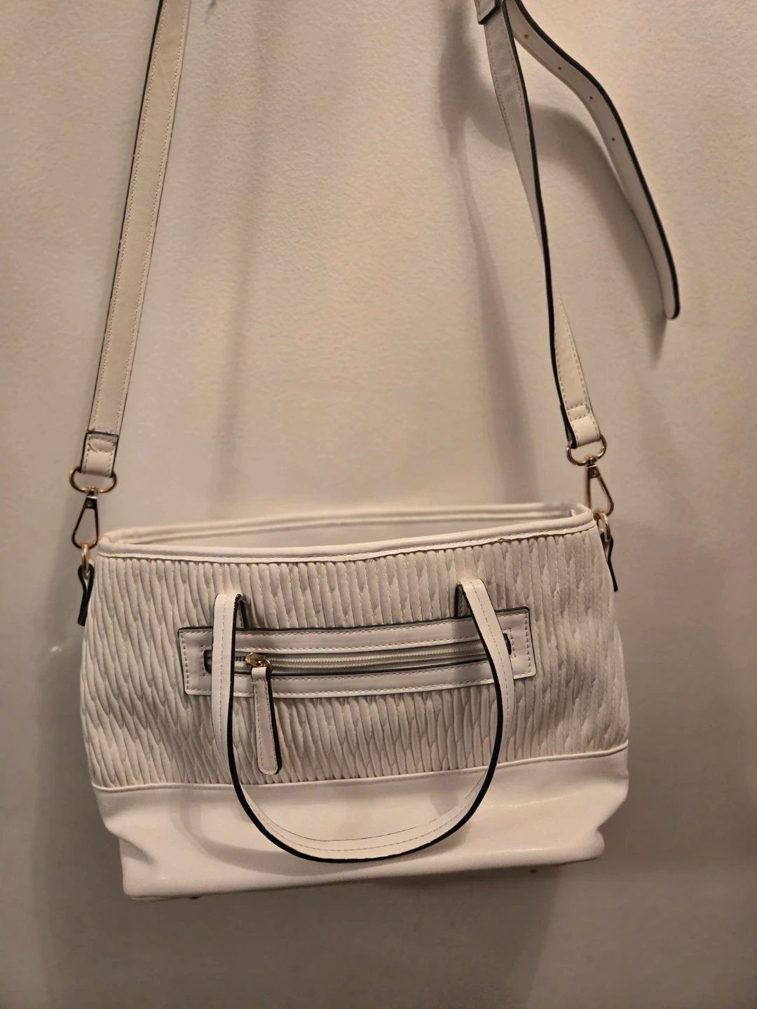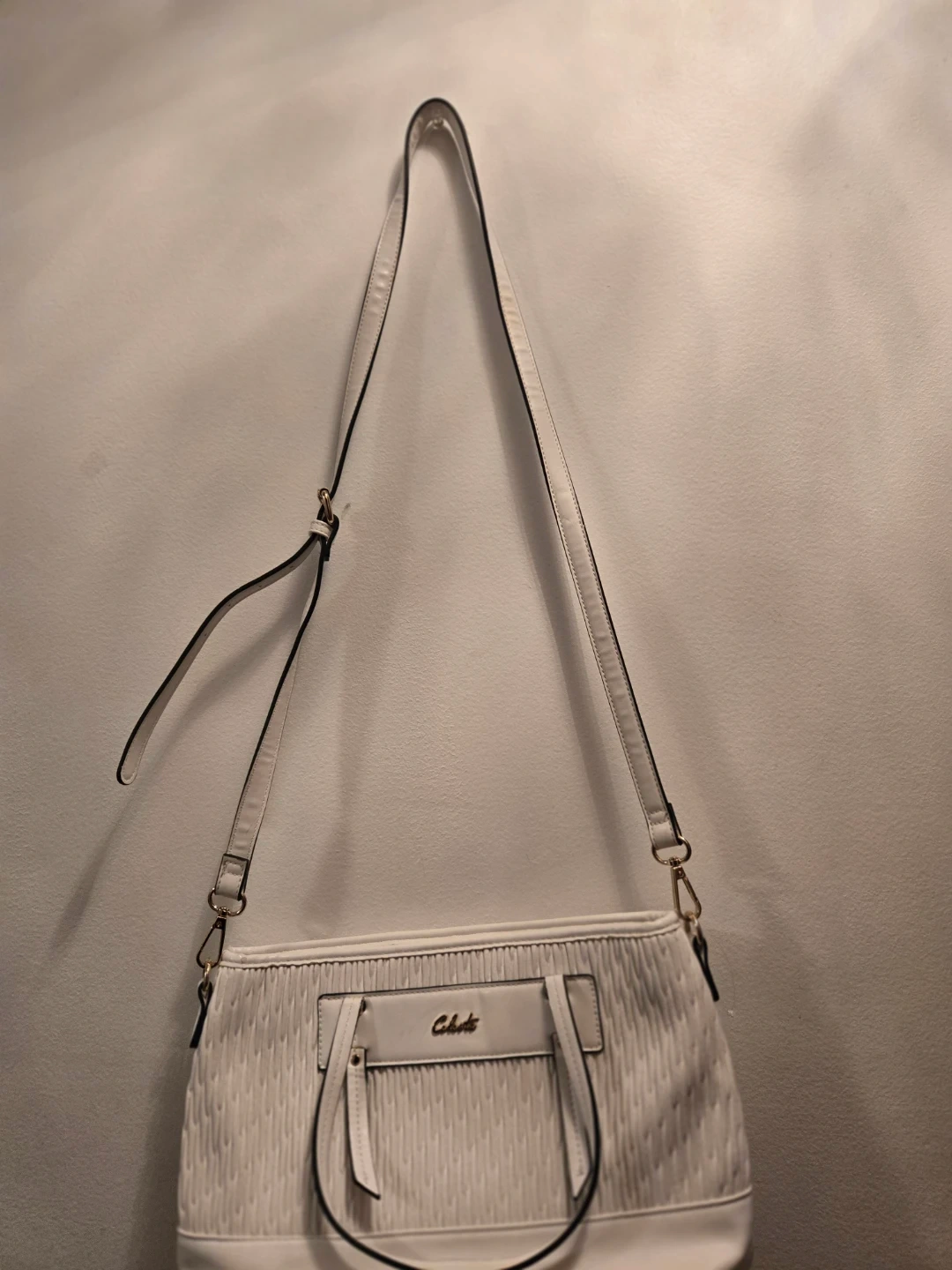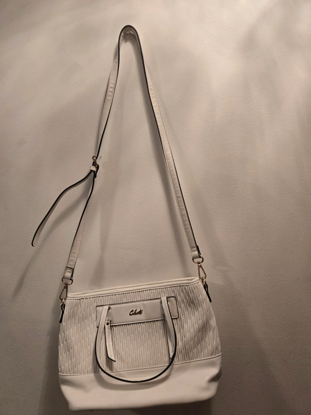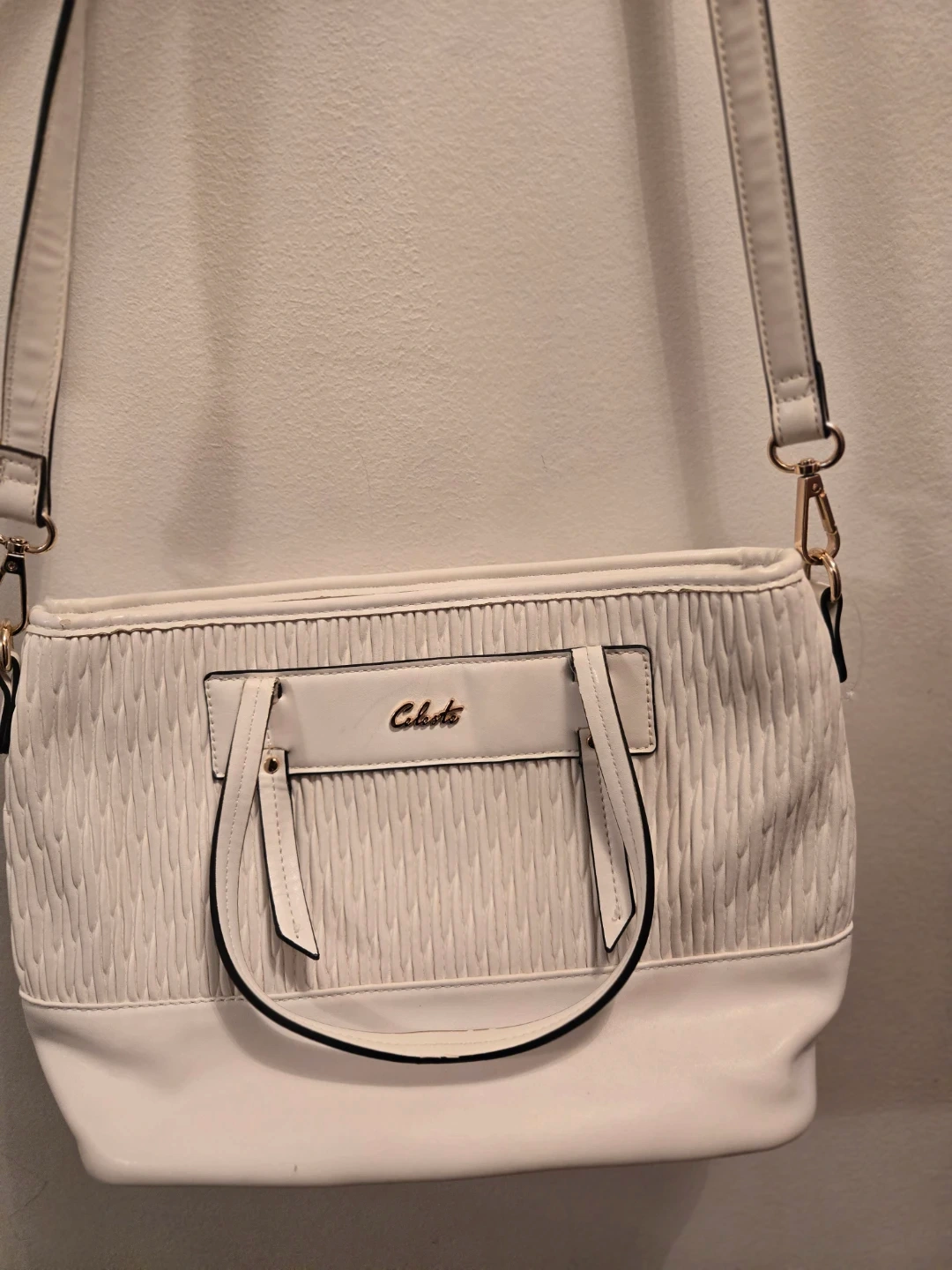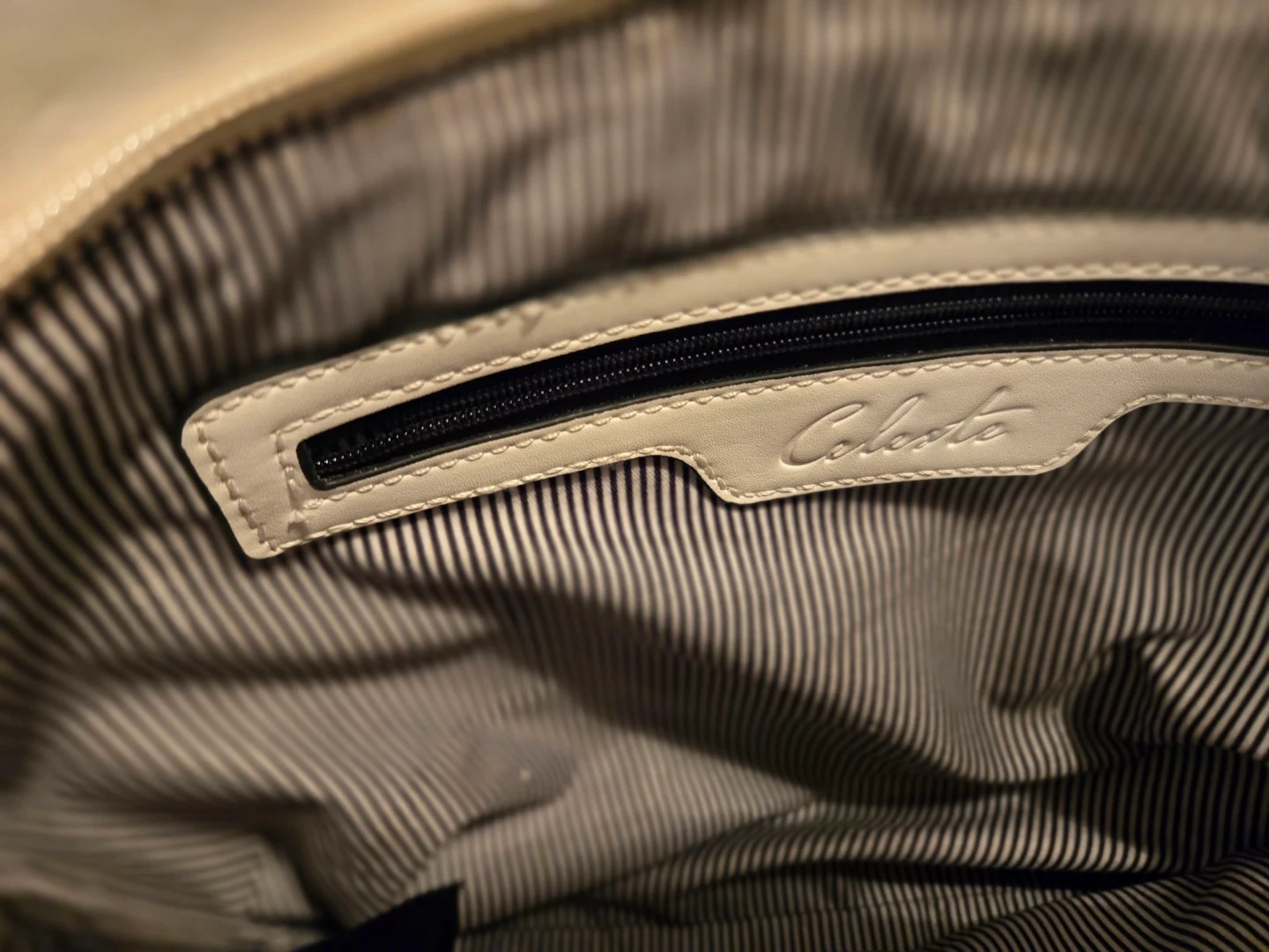 Buy & SellWhite Celeste HandbagWhite Celeste Handbag$40A white handbag by Celeste. It's made of faux leather and has a striped interior lining. Features an inner zip pocket.ConditionGoodWHERE TO MEETM1JView MapSELLERVanessaEglinton East100 reviews0 chats·0 favorites·7 viewsSEND CHAT TO SELLERHi Vanessa! I’m interested in your listing.Hi Vanessa! I’m interested in your listing.Get the Karrot app to chatSign In to chat