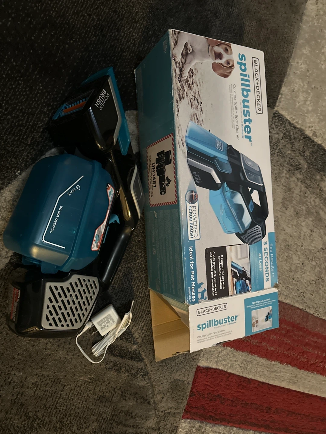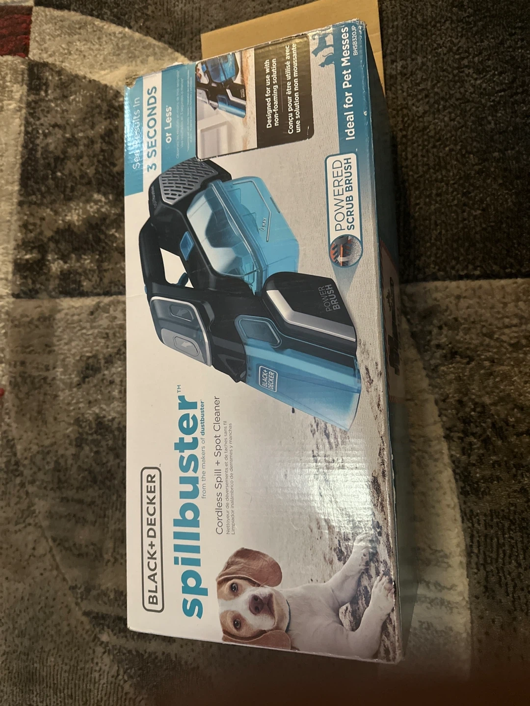 This is a BLACK+DECKER Spillbuster Cordless Spot + Spot Cleaner. It's designed for spills and pet messes, featuring a powered scrub brush. Ideal for quick cleanups!