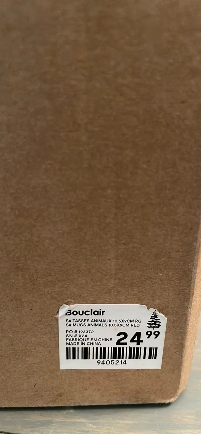 Bouclair Set of 4 Mugs with Animal Designs