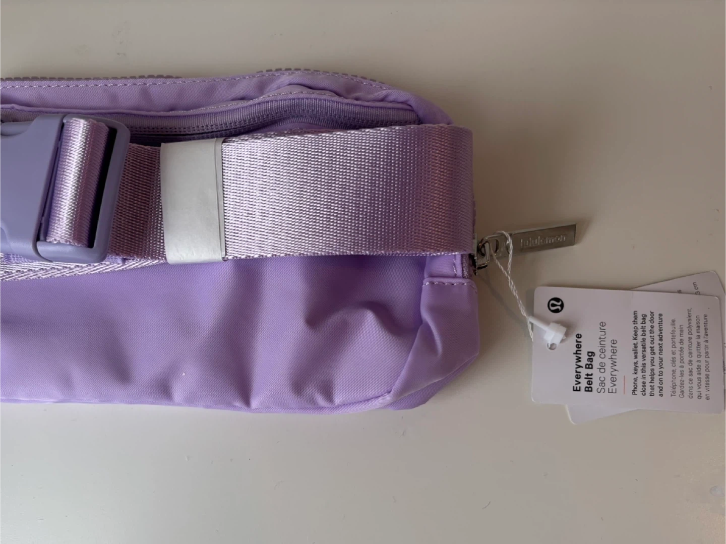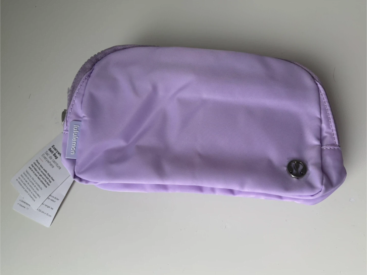 Lululemon Everywhere Belt Bag in a lovely lavender colour. It's designed to keep your essentials close, whether you're out and about or on your next adventure. Volume: 1L.