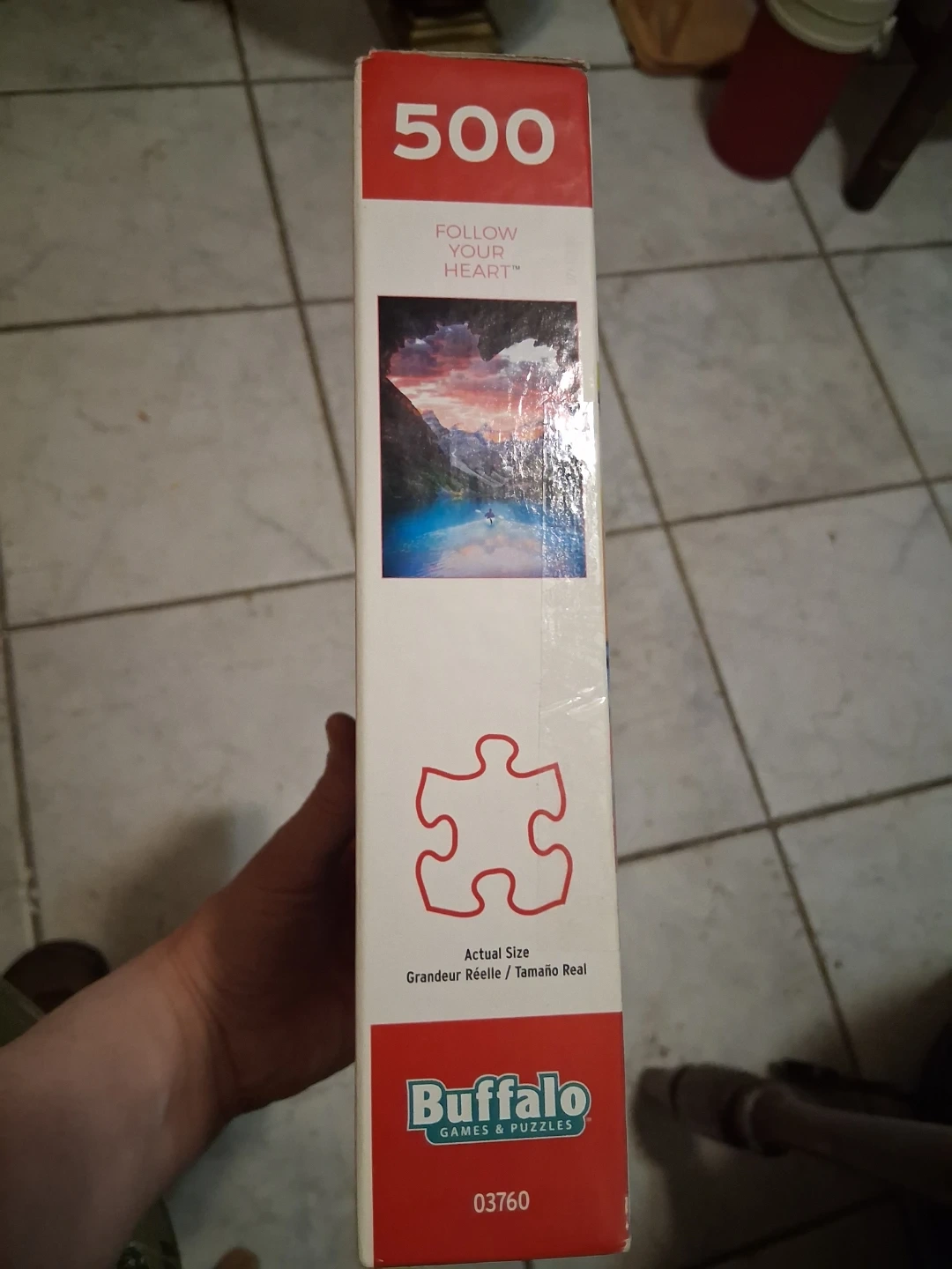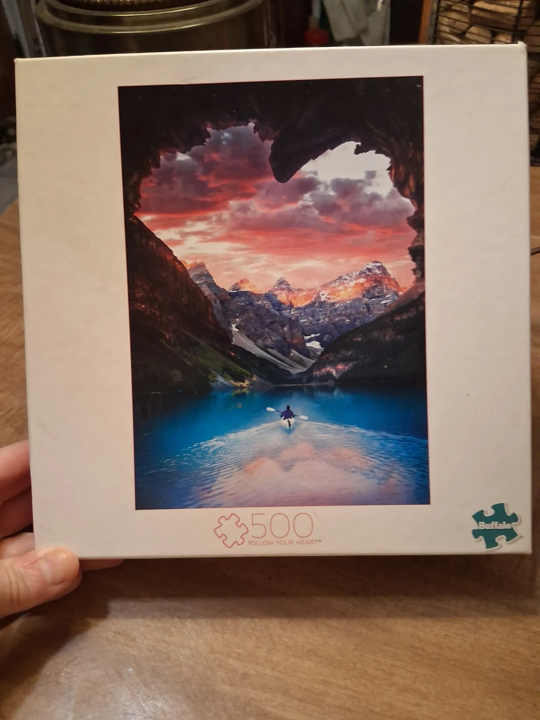 This Buffalo Games jigsaw puzzle features the "Follow Your Heart" image. It has 500 pieces and includes a bonus puzzle poster. It's made with 100% recycled paperboard.
