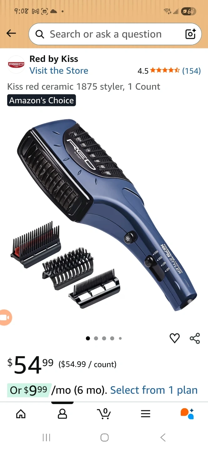 This is the RED by KISS 1875 Ceramic Styler. It features multiple brush attachments for versatile styling. Multiple heat settings are available.