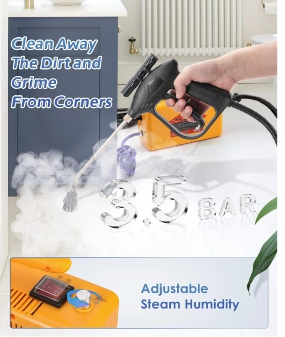 This compact steam cleaner for home use has a built-in 3.3-foot water inlet hose, which can insert into the external bucket as a water source. Enjoy continuous and steady natural steam without holding a heavy tank! 1700W high power, ready in 20 seconds, up to 221℉, cleans with 3.5Bar pressurized steam.
